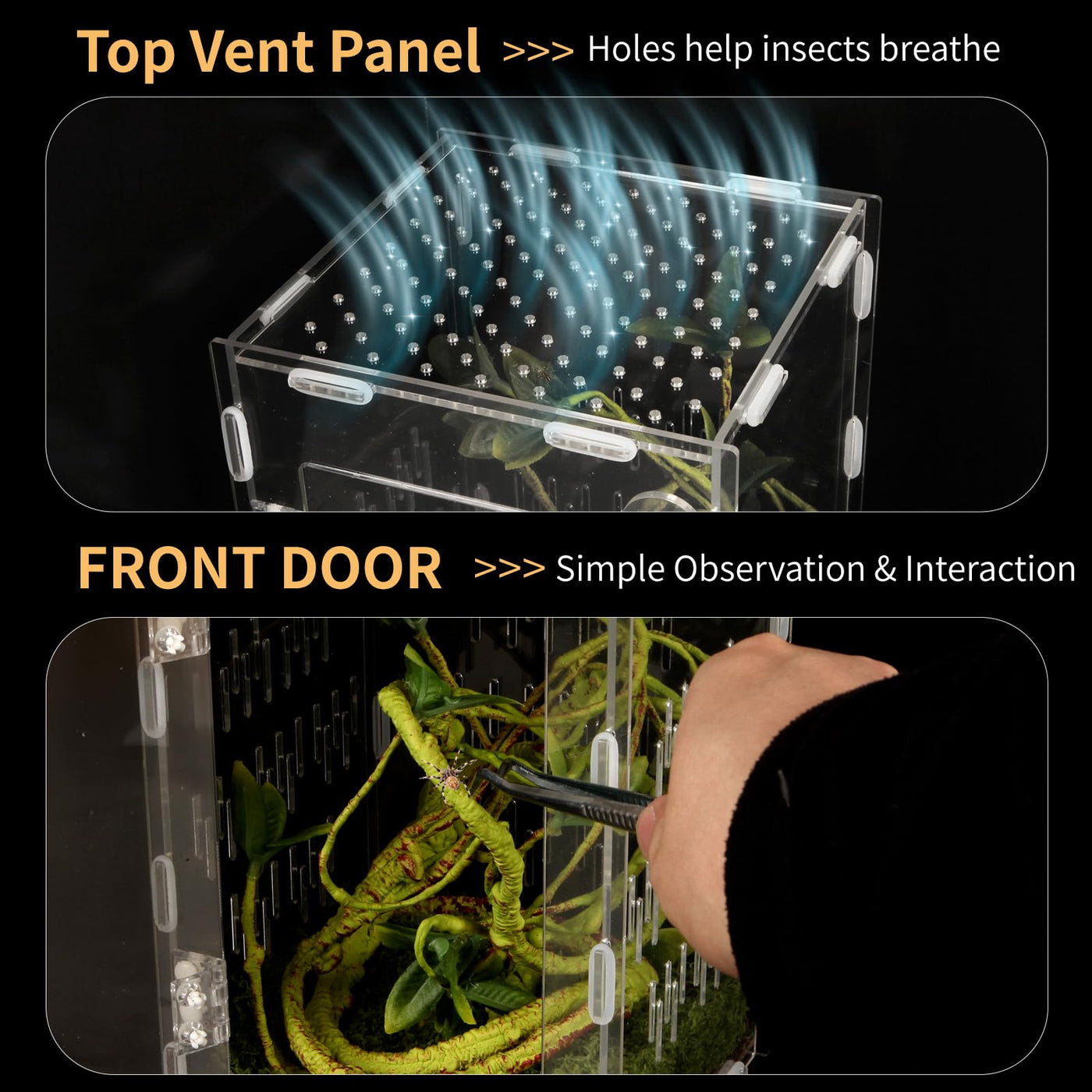 The Orekemo Acrylic Reptile Terrarium Redefines Exotic Pet Care With Its Meticulously Engineered Design. Crafted For Arachnid Enthusiasts And Reptile Keepers, This 9.8*5.9*5.9In Terrarium Combines Functionality And Aesthetics. The Ultra-Clear Acrylic Walls Offer Unmatched Visibility To Observe Your Jumping Spiders Acrobatics Or Tarantulas Nocturnal Habits, While The Front & Top Opening Doors Ensure Hassle-Free Access Without Disturbing Delicate Habitats.