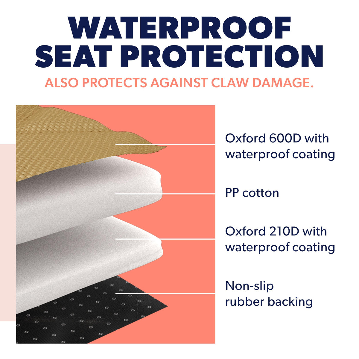 Q: Is the Active Pets Dog Car Seat Cover waterproof?A: Yes, the Active Pets Dog Car Seat Cover features a four-layer construction that includes a waterproof barrier, ensuring your seats remain protected from mud, water, and fur.
