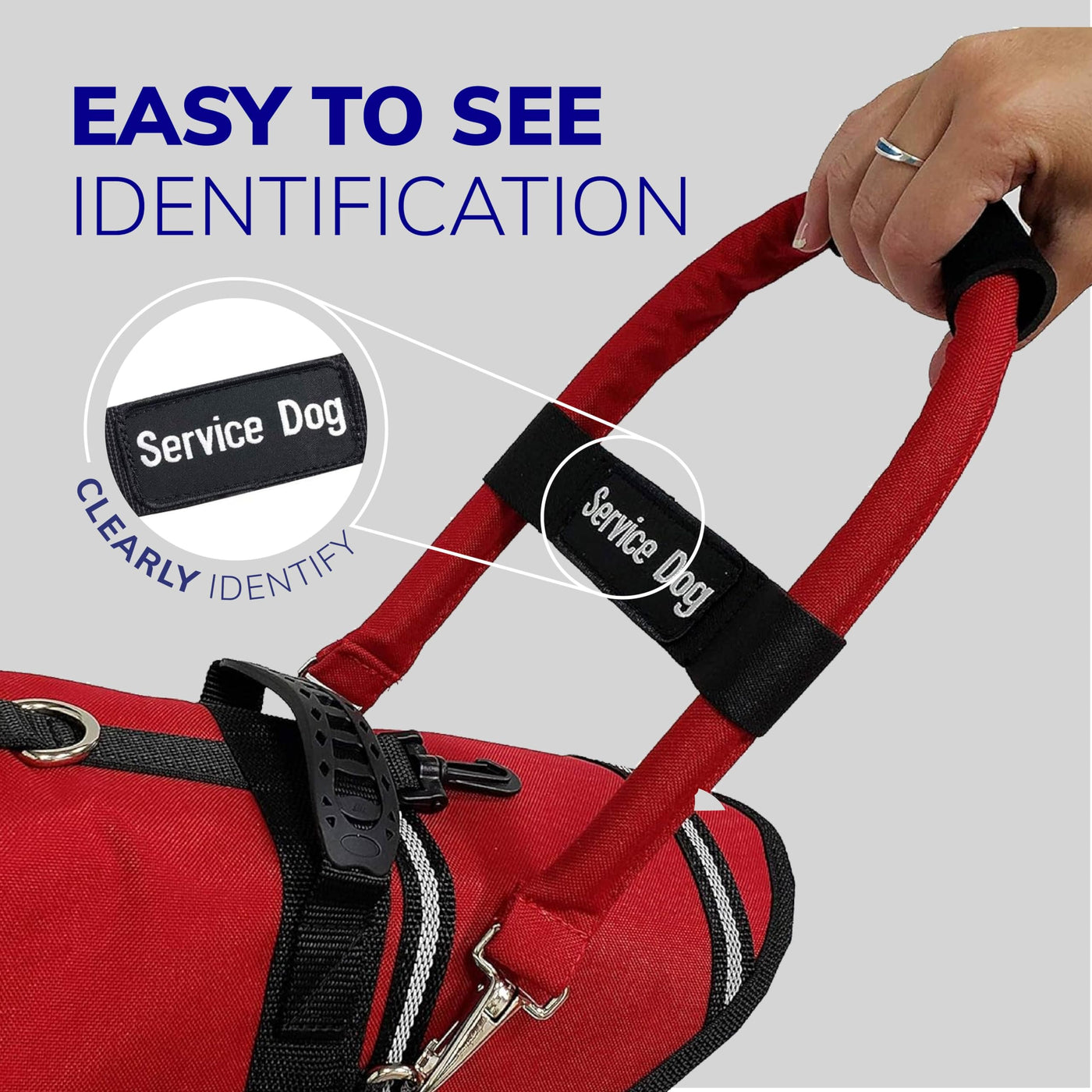 Activedogs Bridge Handle For Service Dog Vest & Harnesses - Extra Padded Cordura 12' Handle With Neoprene Grip & Elastic Service Dog Id Patch Band - Red