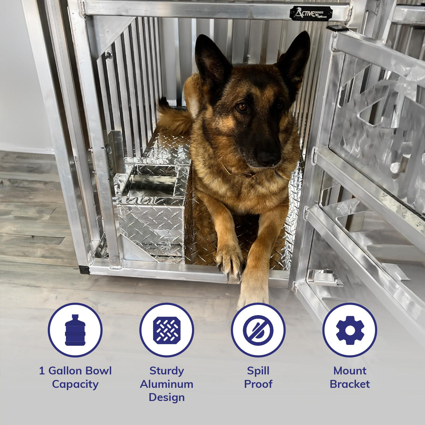 The Activedogs Large No Spill Water Bowl Is The Ultimate Solution For Keeping Your Dog Hydrated Without The Mess. Designed As A Spill Proof Dog Water Bowl, It Holds Up To 1 Gallon Of Water, Making It Perfect For Large Breeds. Its Innovative Design Functions As A Slow Water Bowl For Dogs, Minimizing Spills And Splashes, Much Like The Popular Slopper Stopper Bowls. Created From Durable Aluminum, This Big Dog Water Bowl Is Built To Last And Includes A Convenient Drain Plug For Easy Water Changes. The No Drip Dog Water Bowl Ensures A Clean Area, While The Mounting Bracket Securely Attaches To Walls, Crates, Or Kennels, Making It A Reliable Water Feeder For Dogs. With A Focus On Preventing Mess, It Serves Perfectly As A No Splash Dog Water Bowl. Our No-Spill Dog Bowl Is Made In The Usa And Is Considered As A Perfect Bowl For Active Dogs. This Zero Splash Dog Water Bowl Offers Stability And Cleanliness, Functioning As A Non Spill Dog Water Bowl Thats Easy To Maintain And Perfect For Indoor Or Outdoor Use. Whether You'Re Looking For Dog Water Bowls For Home Or Kennel, The Activedogs No Spill Dog Water Bowl Ensures A Constant Hydration Solution For Your Pets.