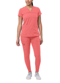 Adar Pro Movement Booster Scrub Set For Women - Sweetheart V-Neck Scrub Top Yoga Jogger Scrub Pants - P9400 - Rapture Rose - Xl
