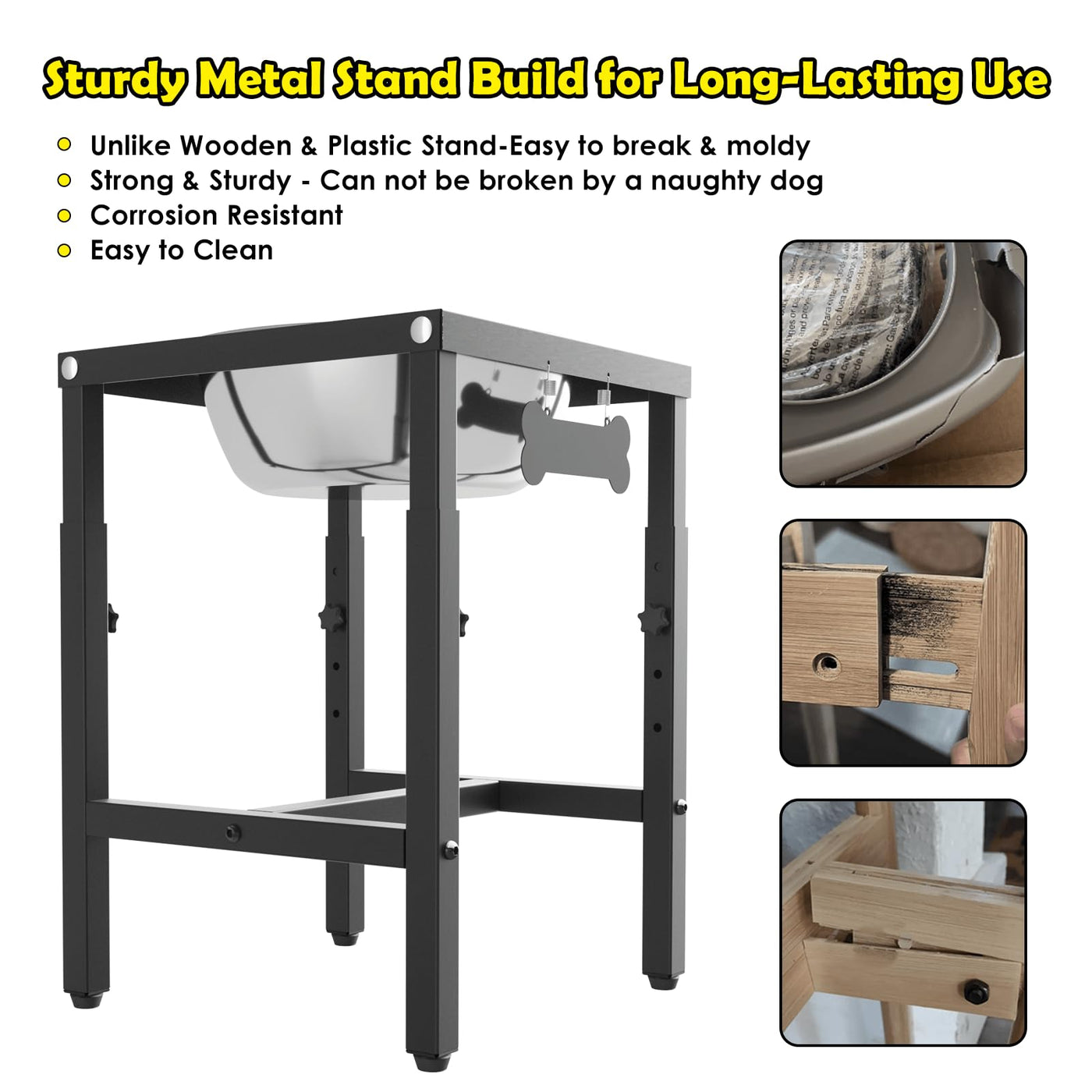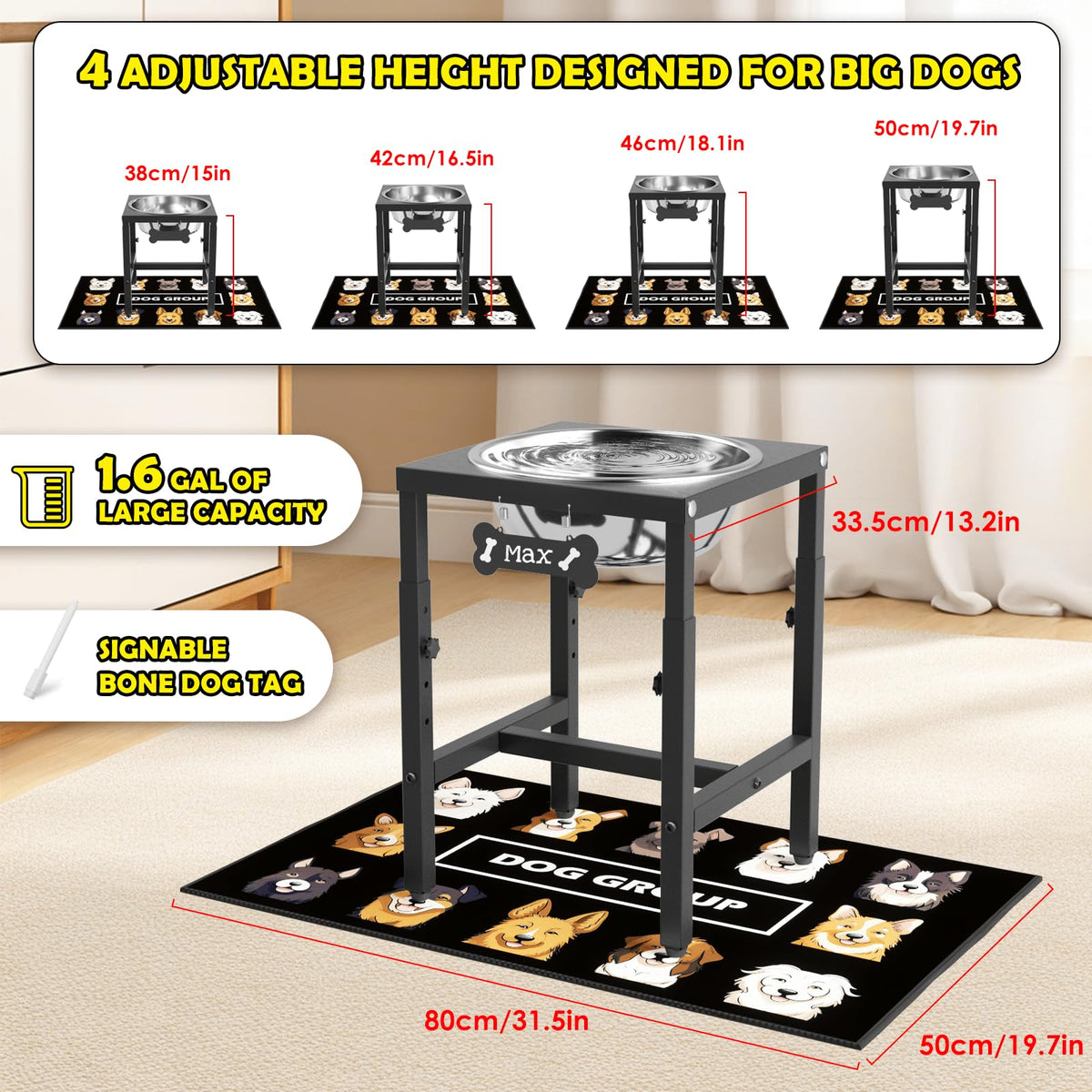 ADENGL 1.6 Gallon Elevated Dog Water Bowl for Large Dogs, 4-Height Adjustable (15-20) Raised Stainless Steel Bowl with Spill-P