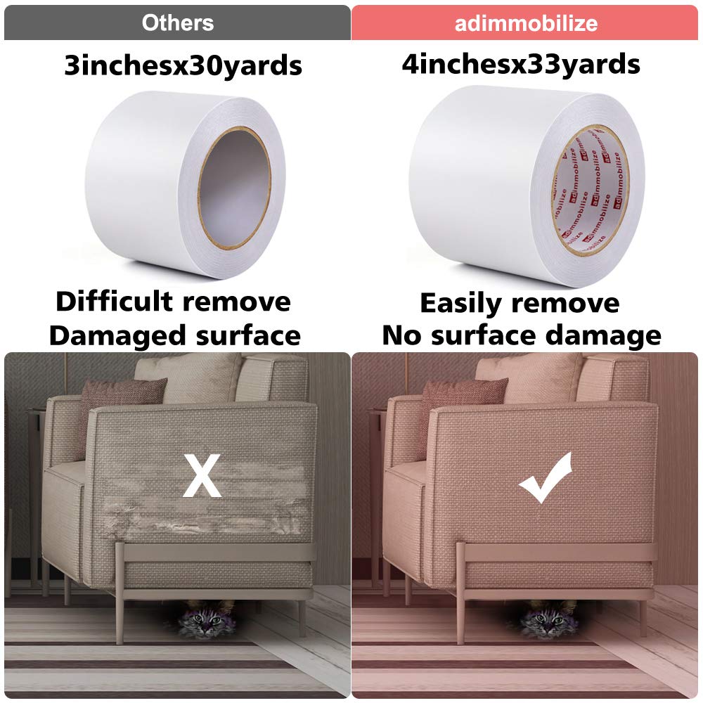 Q: How does the adimmobilize Cat Scratch Deterrent Tape work?A: The adimmobilize Cat Scratch Deterrent Tape features a double-sided adhesive that cats dislike, helping to train them to avoid scratching your furniture. When cats encounter the sticky surface, they tend to steer clear of it, effectively deterring them from scratching.