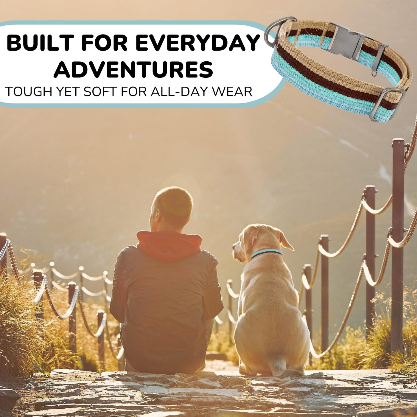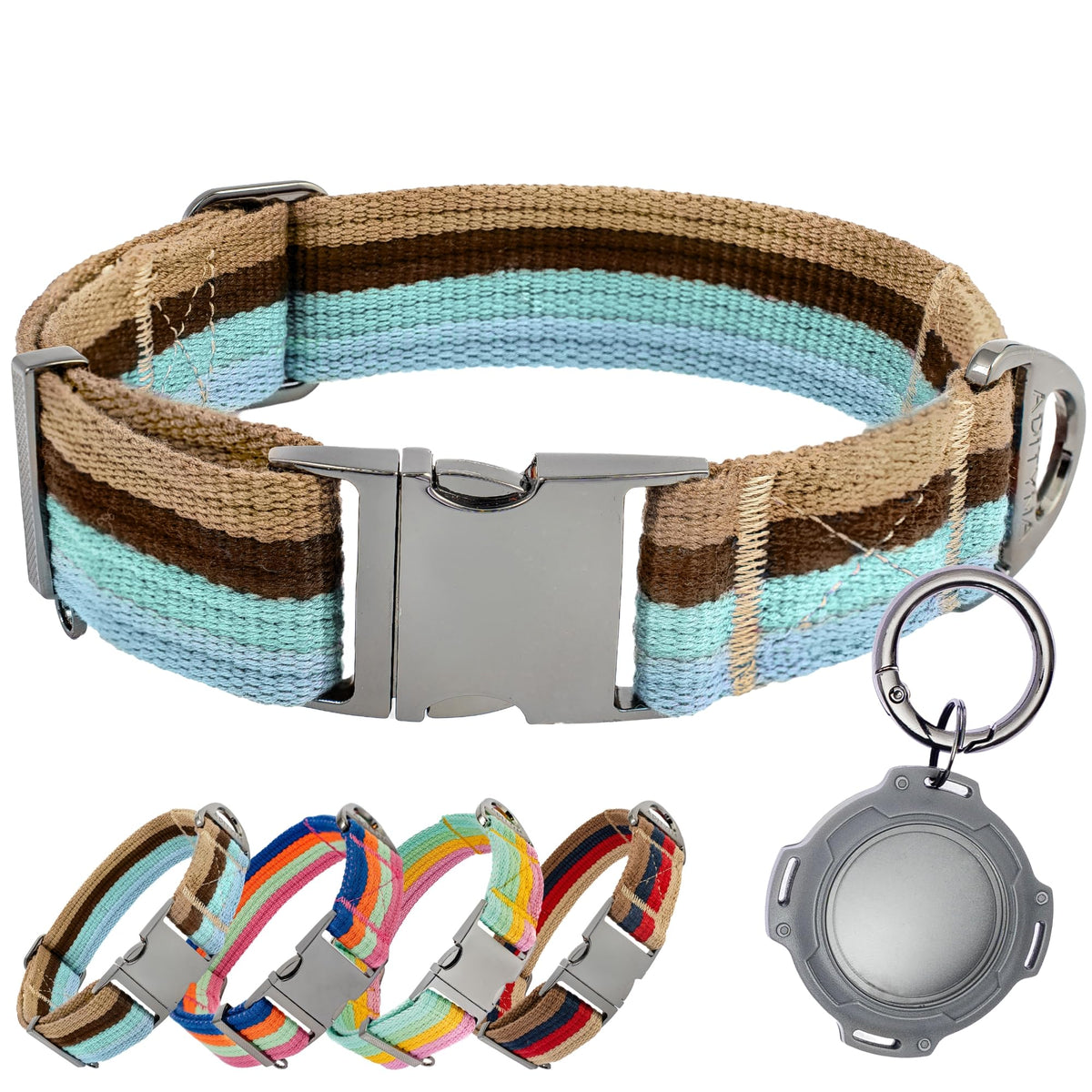 Adityna Cotton Dog Collar With Airtag Holder - Heavy-Duty Metal Buckle, Breathable, Easy Adjustable For Medium & Large Breeds -