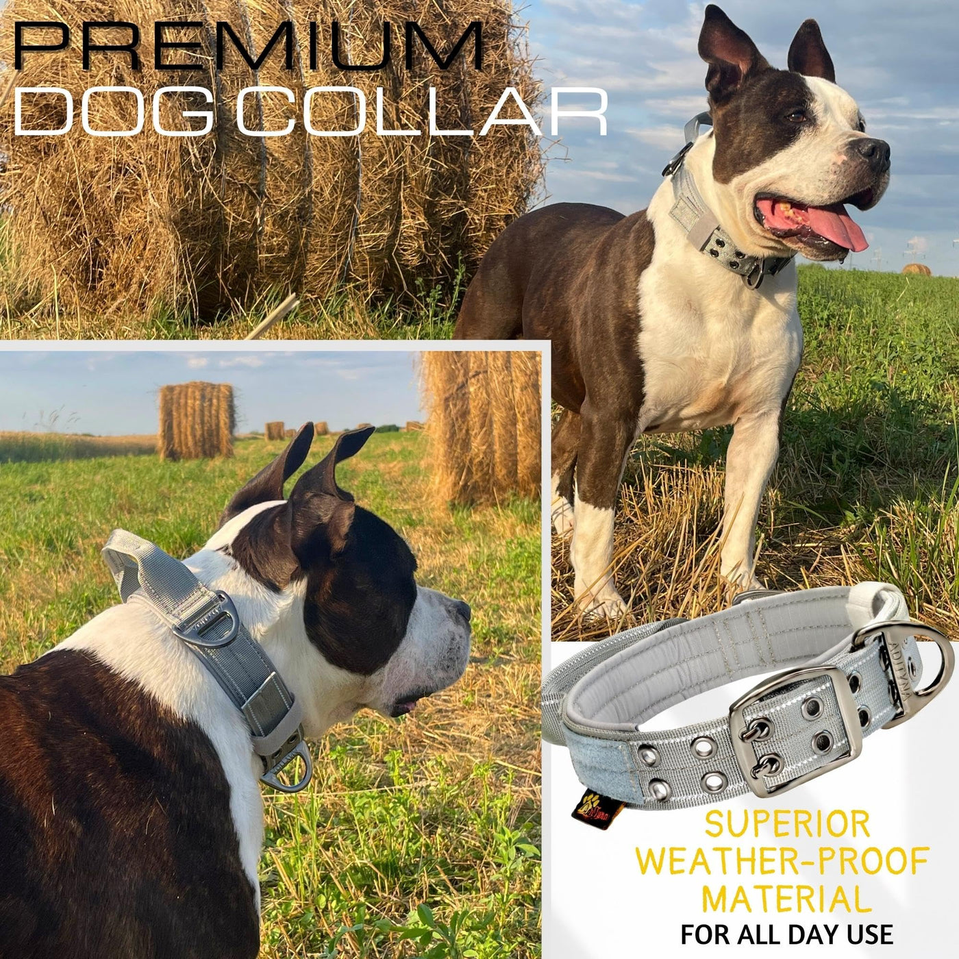Adityna Heavy Duty Dog Collar For Extra-Large Dogs - Reflective Gray Collar With Handle For Training, And Walking - Wide, Thick,