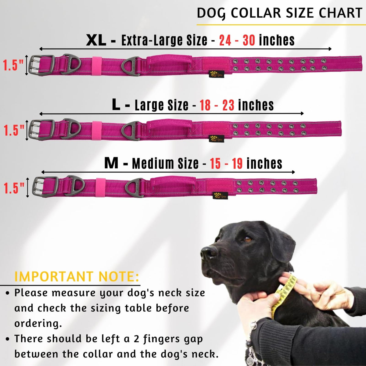 Discover The Ultimate Combination Of Durability, Comfort, And Safety With Our Adjustable Large Dog Collar. Specially Designed For Large Breeds, This Collar Easily Adjusts From 18 To 23 Inches, Making It A Perfect Fit For Labrador Retrievers, Golden Retrievers, German Shepherds, American Bulldogs, Australian Shepherds, Dobermans, Boxers, And Similar-Sized Breeds. To Ensure The Best Fit, Remember To Measure Your Dog'S Neck Circumference Before Selecting The Right Size. Crafted For Both Comfort And Safety, Our Collar Features A Wider 1.5-Inch Width. Made From Lightweight, Yet Heavy-Duty Nylon Webbing, It'S Designed To Withstand The Rigors Of Active Dogs. The Robust D-Ring For Leash Attachment Adds An Extra Layer Of Reliability For All Your Adventures, Be It Running, Walking, Jogging, Or Playful Activities. Control Is Crucial, Especially During Training, Patrolling, Hunting, Or Navigating Through Crowded Areas. Our Collar Comes With A Strong, Comfortable Control Handle, Providing Easy Grab-And-Manage Capability. This Feature Makes It Ideal For Maintaining Control Of Your Dog In Challenging Environments Or High-Traffic Areas, Ensuring Both Safety And Ease Of Use. Safety Is Paramount, And Our Reflective Safety Stitching Is Thoughtfully Integrated Into The Collar'S Design. Ideal For Outdoor Use, This Weather-Resistant Collar Boasts Reflective Stitching Along The Nylon Webbing, Enhancing Visibility During Nighttime Walks. This Tactical Feature Is A Must-Have For Keeping Your Dog Safe And Visible In Low-Light Conditions. At The Heart Of Our Design Is Your Dog'S Comfort. The Collar Is Lined With Soft Neoprene, Offering Supreme Cushioning And Preventing Any Chafing. This Ensures A Snug And Cozy Fit, Ideal For Dogs With Sensitive Skin Or Those Who Require Extra Comfort.