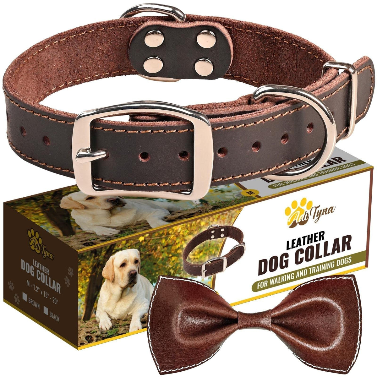 Adityna Heavy Duty Leather Dog Collar For Medium Dogs - Medium Dog Collar Gift Ideea For Dog Lovers - Soft And Strong,100% Genuine Leather (Medium, Brown)