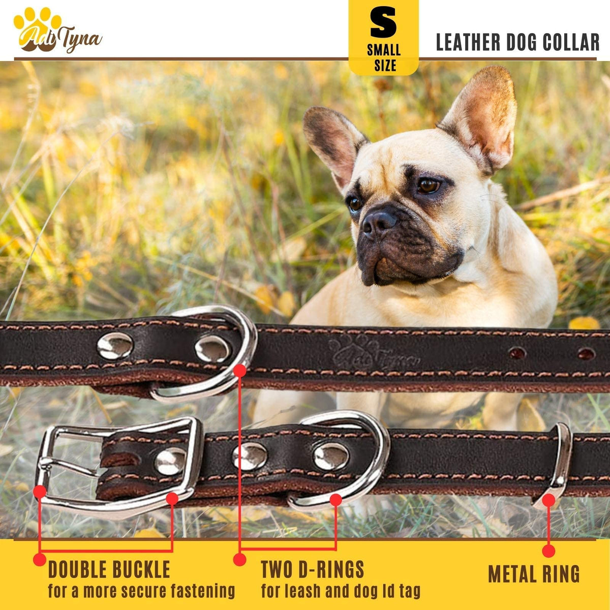 Adityna Heavy Duty Leather Dog Collar For Small Dogs - Small Dog Collar Gift Iddea For Dog Lovers - Soft And Strong Dog Collar For Puppies (Small, Brown)