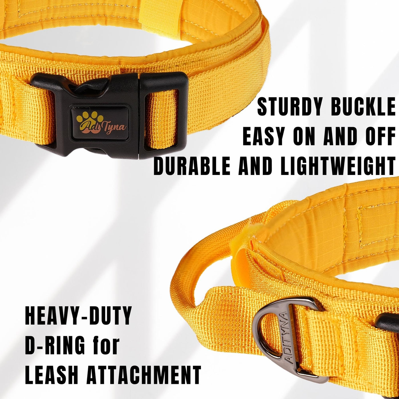 Are You Tired Of Old-Fashioned Large Dog Collars? Are You Looking For A Stylish Tactical Collar For Dogs That Features A Comfortable Traffic Handle For Better Control When Crossing The Street, In High-Traffic Events, At Vet Visits, And Can Be Successfully Used Also With A Dog Leash? Here, At Adityna Weve Built This Heavy-Duty Dog Collar For Large Dogs Made Out Of 1000D Nylon With A Soft Padded Lining As One Of The Most Comfortable K9 Collars On The Market. Maybe You Are Wondering Why Would You Choose A Tactical Collar Among The Plenty Of Others On The Market. Well, We Are Proud To Say That We Are More Than A Manufacturer. We Are A Family Company Where Quality And Love For Dogs Are The Core Fundamentals. As Pet Owners, We Know How Important A Four-Legged Family Member So We Decided To Offer You A Special Bundle. We Add Along With Our Tactical Dog Collar For Large Dogs, 3 Pack Id Patches 2.3 X 1.2 Inches. More Than That Our Adityna Adjustable Dog Collar Has A Dedicated Sticker Id Panel Area - For Id Patches, Just Because We Know How Important Is To Keep Your Best Friend Safe And Easy To Identify. We'Ve Designed This Nylon Dog Collar Available For Almost Any Dog Size. Before Ordering Ensure You Receive The Best-Fitted Size For Your Dog. Please Measure Your Dogs Neck Before Choosing The Size And Then Check The Sizing Table. Dimensions Available: M - 1.5'' X 15.5'' - 19 L - 1.5'' X 18.5'' - 22 Xl - 1.5'' X 21'' - 25'' Width: 1.5 '' Colors: Coyote Brown, Ranger Green, Black, Camo, Pink, Red, Yellow, Purple, Green, Orange, Gray, And Burgundy.