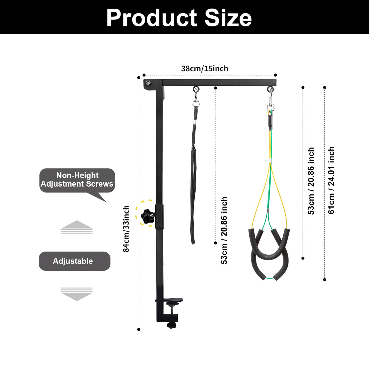 ?Unique Design?The arm for grooming table is perfect for pets that weigh 15 pounds or less. It is adjustable in height from 18 to 33 inches and the upper part is foldable for easy storage. The lower part is fixed to a table edge with a clamp.