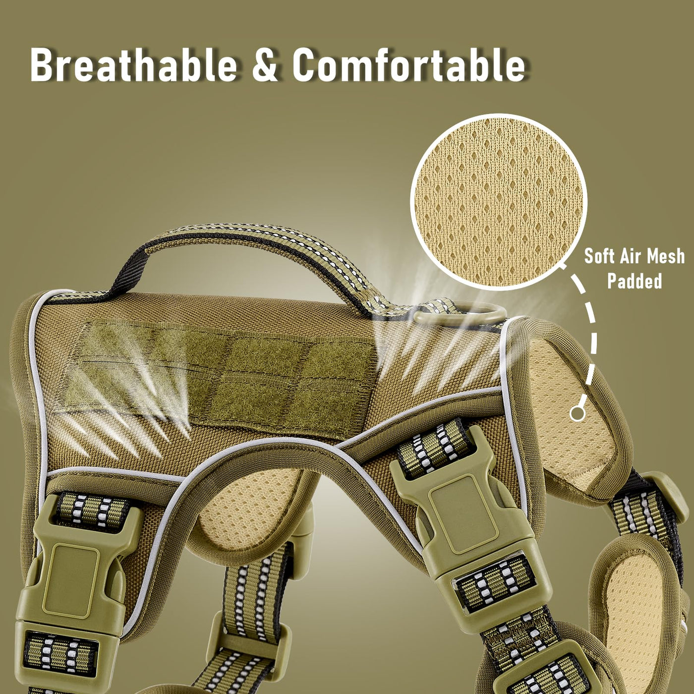 Breathable And Comfortable- Our Harness Is Made Of Durable Nylon Oxford And Padded With Soft Cushion To Protect Your Dog'S Skin. Breathable Air Mesh Keeps Your Dog Cool During Outdoor Activities. Super Reflective- The Reflector Points Are Very Bright. Having It In Our Harness That Reflects Light Gives Your Dogs A Lot Of Safety That Eases Your Anxiety When You Are Chasing Them Barefoot Down The Road In The Dark, You Can Spot Them Right Away. It Is Really Safe For Nighttime Walking. 4-Way Fully Adjustable- Our Adjustable Harness Has 4 Easy Adjusting Straps. You Can Use Its 2 Neck Straps And 2 Chest Straps To Create A Perfect Fit For Your Dog. It Is Easy To Adjust To A Larger Size As He/She Grows. No Worries About Slipping Out Or Choking. There'S A Snap Buckle Closure At The Side Of The Neck, And Then One On Each Side Of The Torso Part. So, All Your Dog Has To Do Is Stand There, Let You Unclick The 3 Closures And It Falls Right Off Of Her/Him. 3 Buckles Make It So Easy To Put This Harness On Your Dog And Take It Off, All Done By Yourself, Without Another Person'S Help. Also, You No Longer Have To Try To Slide A Harness Over Your Dogs Head. Both D-Rings ( Front & Back ) Are All Metal, Very Strong. The Front D-Ring Allows You To Have Full Control Over Dogs And Give Them Better Comfort. The Back D-Ring Is Ideal For Daily Dog Walks, Jogging, Or Hiking. Theres A Handle To Help Control When Your Dog Gets Excited For Going On Walks. It Will Allow You To Grab Dogs Quickly And Get Better Control Over Them Than A Leash Or Grabbing Their Collars Would Do. It Also Can Be Used In The Car With A Seat Belt Attachment And Dogs Are Secure In Case Of An Accident Or Stopping Short.