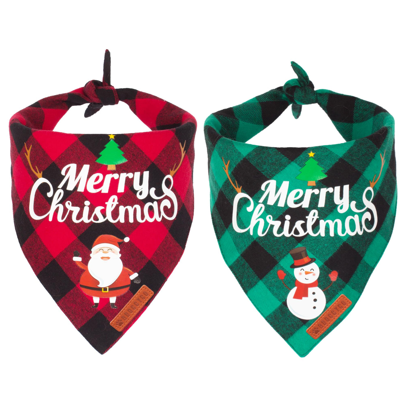 Adoggygo 2 Pack Dog Bandana Christmas Classic Plaid Pet Scarf Triangle Bibs Kerchief Merry Christmas Santa Snowman Print Pet Bandana For Large X-Large Dogs Pets (Christmas-1, X-Large)