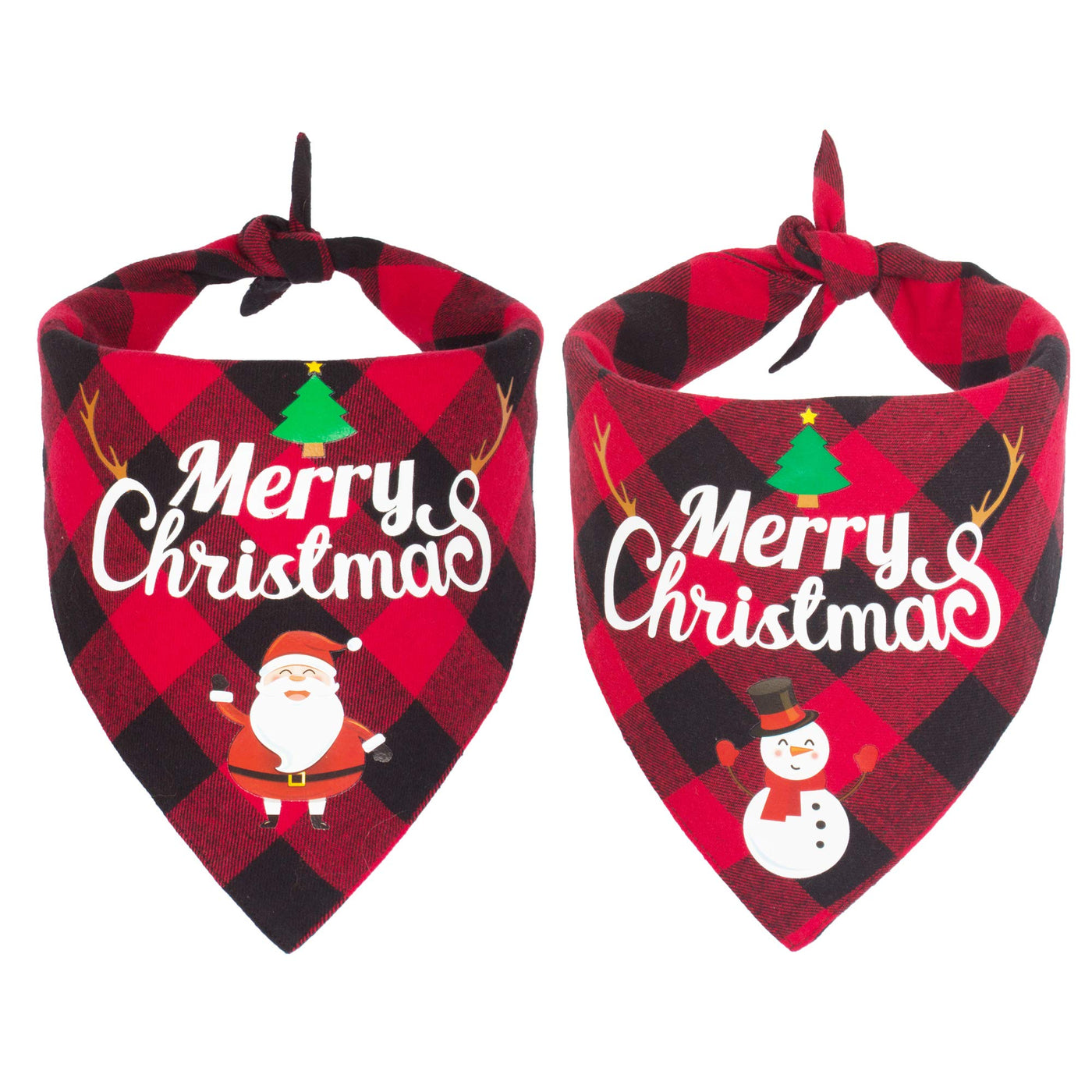 Adoggygo 2 Pack Dog Bandana Christmas Classic Plaid Pet Scarf Triangle Bibs Kerchief Merry Christmas Santa Snowman Print Pet Bandana For Large X-Large Dogs Pets (Red&Red, X-Large)