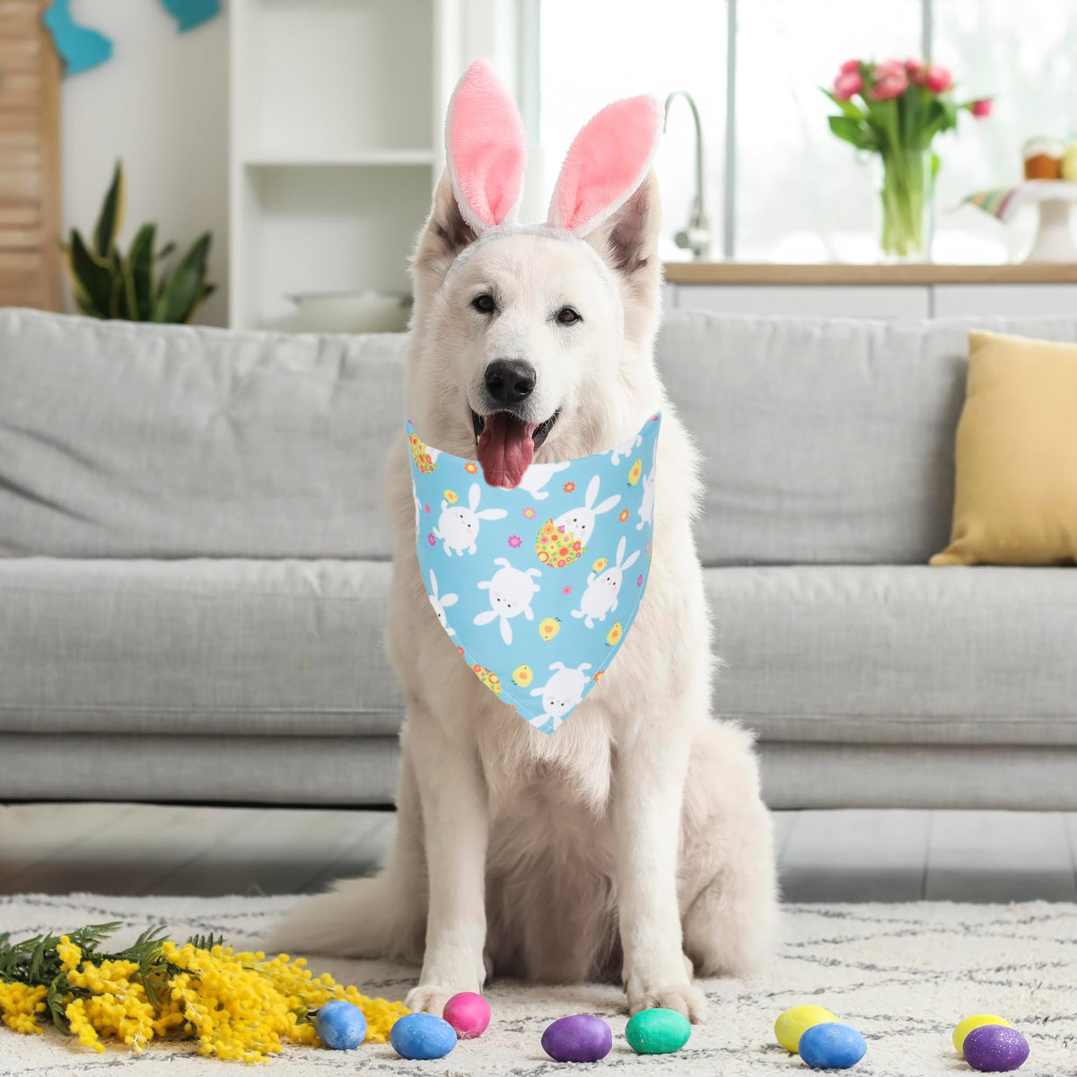 ADOGGYGO 4 Pack Easter Dog Bandana Triangle Dog Scarf Rabbit Easter Egg Pattern Pet Bandana for Large and X-Large Dogs Pets (X-L