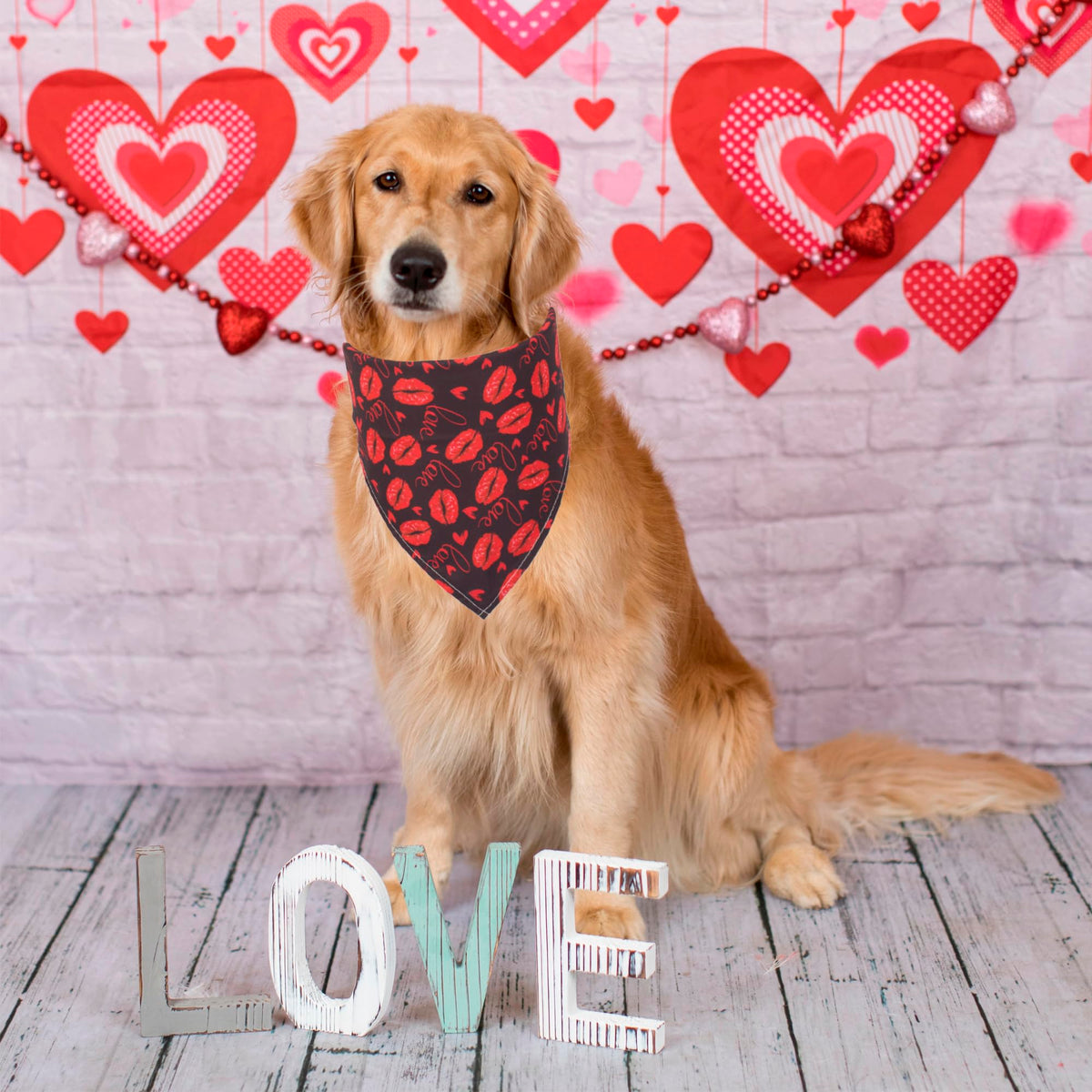 ADOGGYGO 4 Pack Valentine's Day Dog Bandanas Triangle Pet Heart Bandana for Dogs Pets, make your pet looks lovely on Valentine's Day. Features: Material: polyester, soft and durable, lightweight and breathable Color: pink, red, black Design: red heart, ''love'', lip print Multiple Size to Choose: Small size: 14''X14''X21'',suitable for neck size up to 12'' Large size: 19''X19''X27'',suitable for neck size up to 18'' X-Large size: 21''X21''X31'',suitable for neck size up to 22'' Package: 4 x dog valentine bandanas Let your furry friend join in the valentine's day of the year! Note: Please measure the size of your pet and leave room to tie knot.