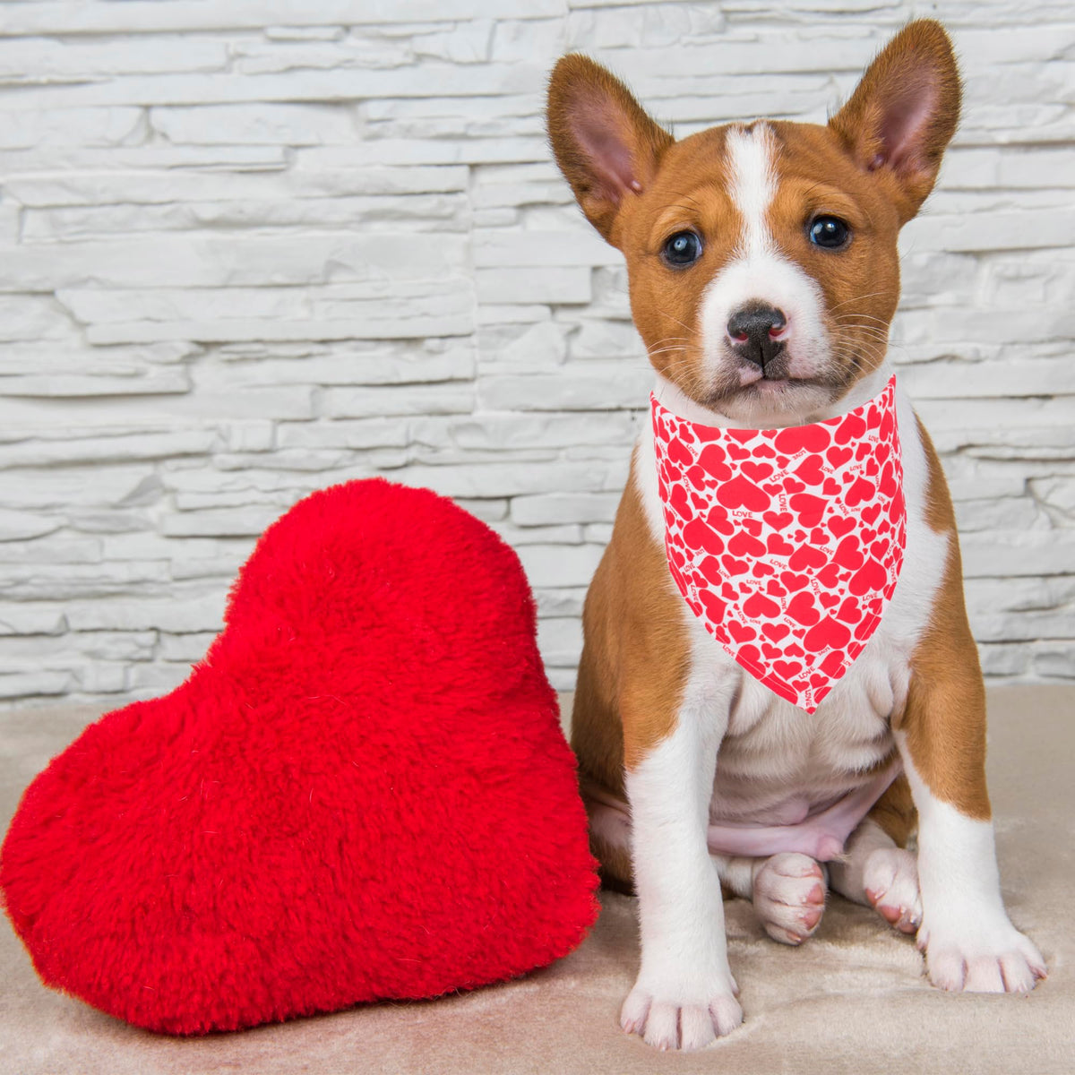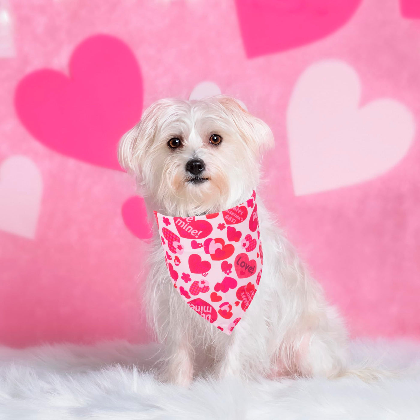 ADOGGYGO 4 Pack Valentine's Day Dog Bandanas Triangle Pet Heart Bandana for Dogs Pets, make your pet looks lovely on Valentine's Day. Features: Material: polyester, soft and durable, lightweight and breathable Color: pink, red, black Design: red heart, ''love'', lip print Multiple Size to Choose: Small size: 14''X14''X21'',suitable for neck size up to 12'' Large size: 19''X19''X27'',suitable for neck size up to 18'' X-Large size: 21''X21''X31'',suitable for neck size up to 22'' Package: 4 x dog valentine bandanas Let your furry friend join in the valentine's day of the year! Note: Please measure the size of your pet and leave room to tie knot.