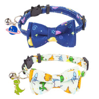 Adoggygo Cat Collar Breakaway With Cute Bow Tie Bell, 2 Pack Kitten Collar With Removable Bowtie, Universe Dinosaur Bowtie Colla