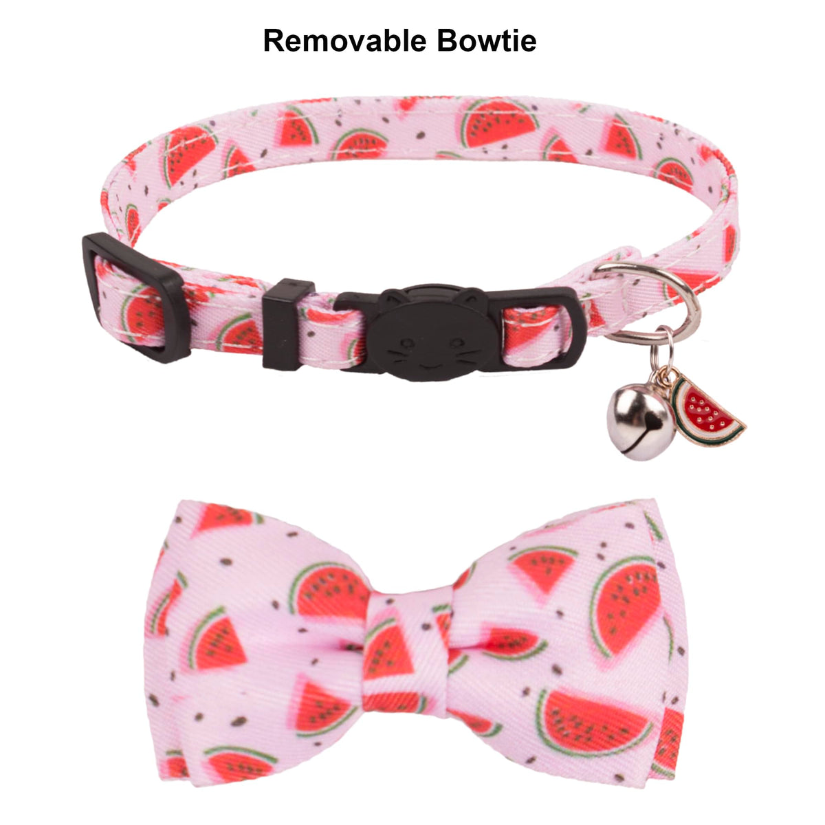 Adoggygo 2 Pack Watermelon Avocado Cat Collar Breakaway With Cute Bowtie Bell, Not Only Cute And Fashion, But Also Provide Your Cat With Safety. Size:7.5''=Neck=10.5''; 0.4'' In Width Material: Durable Polyester Fabric Style: Cute Fruit Pattern Target Audience: Cats, Puppies Features: 1. Adorable Fruit Pattern Designed With Cute Watermelon And Avocado Pattern. Cute Cat Collars Make Your Cat Lovely In Daily Life. 2. Breakaway The Safe Buckle Which Releases Quick When Pressure Is Applied. It Provides More Safety For Your Cat. On The Other Hand, It Is Convenient For You To Open It To Put On And Off. 3. Removable Bowtie With 2 Elastic Bands Attached Collar. You Can Adjust The Position Of The Bowtie To Show It On The Front Of Your Cat'S Neck. 4. Safety Bell Collar Has A Safety Bell To Warn Birds And Small Animals That The Cat Is Coming. On The Other Hand, You Will Never Lost Your Cats. The Bell Can Be Taken Off Or Replaced. Package Include: 1* Red Watermelon Cat Collar 1* Green Avocado Kitten Collar Notice: Due To Manual Measurement, There Are 0.2'' - 0.5'' Error. Pleasure Measure Carefully Before Purchase