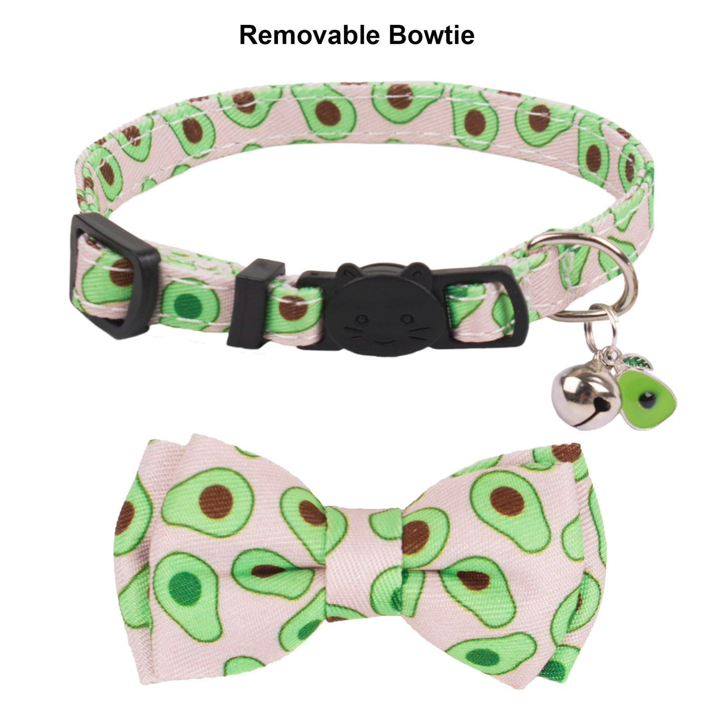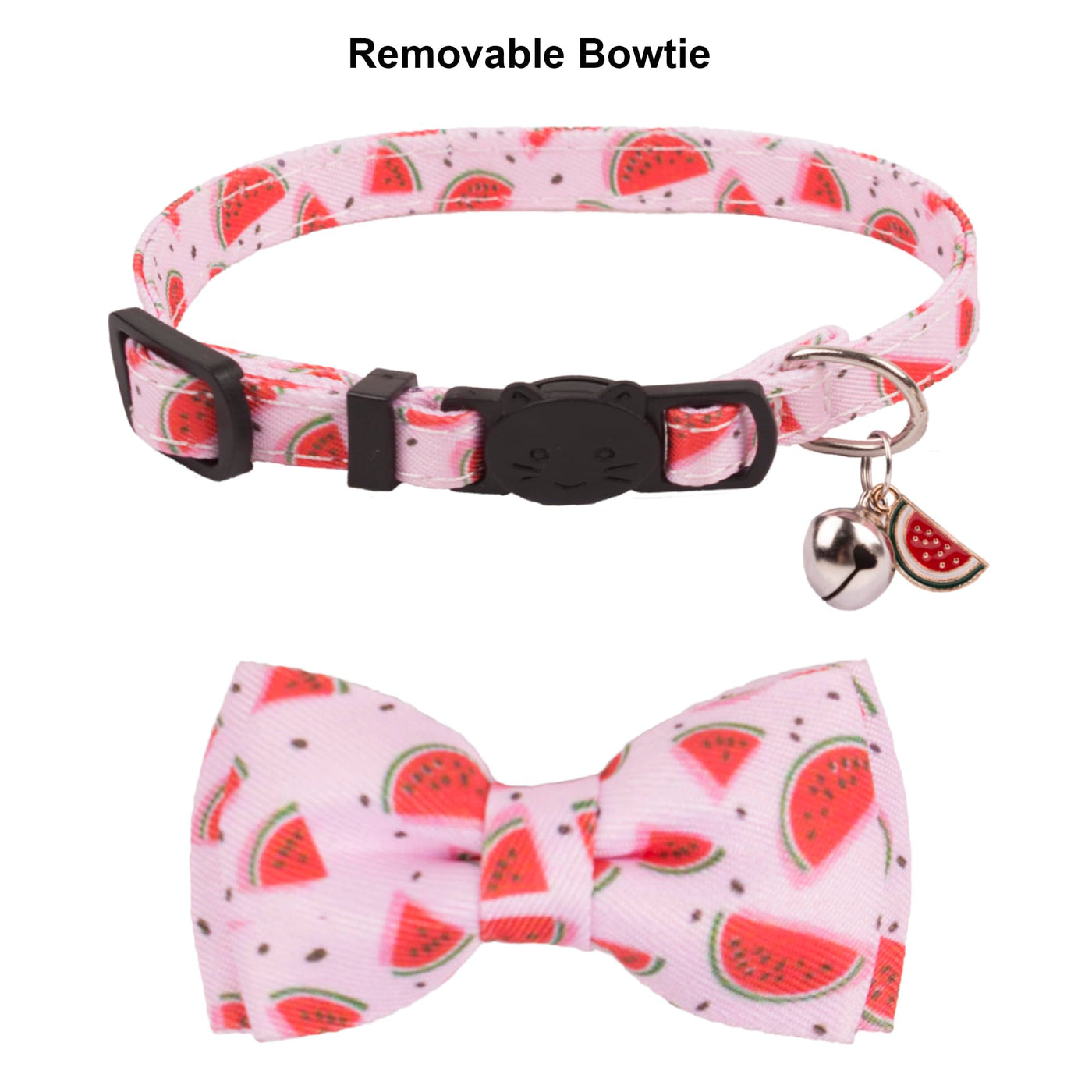 Adoggygo Cat Collar Breakaway With Cute Bow Tie Bell - 2 Pack Watermelon Avocado Pet Collars With Removable Bowtie Fruit Bowtie