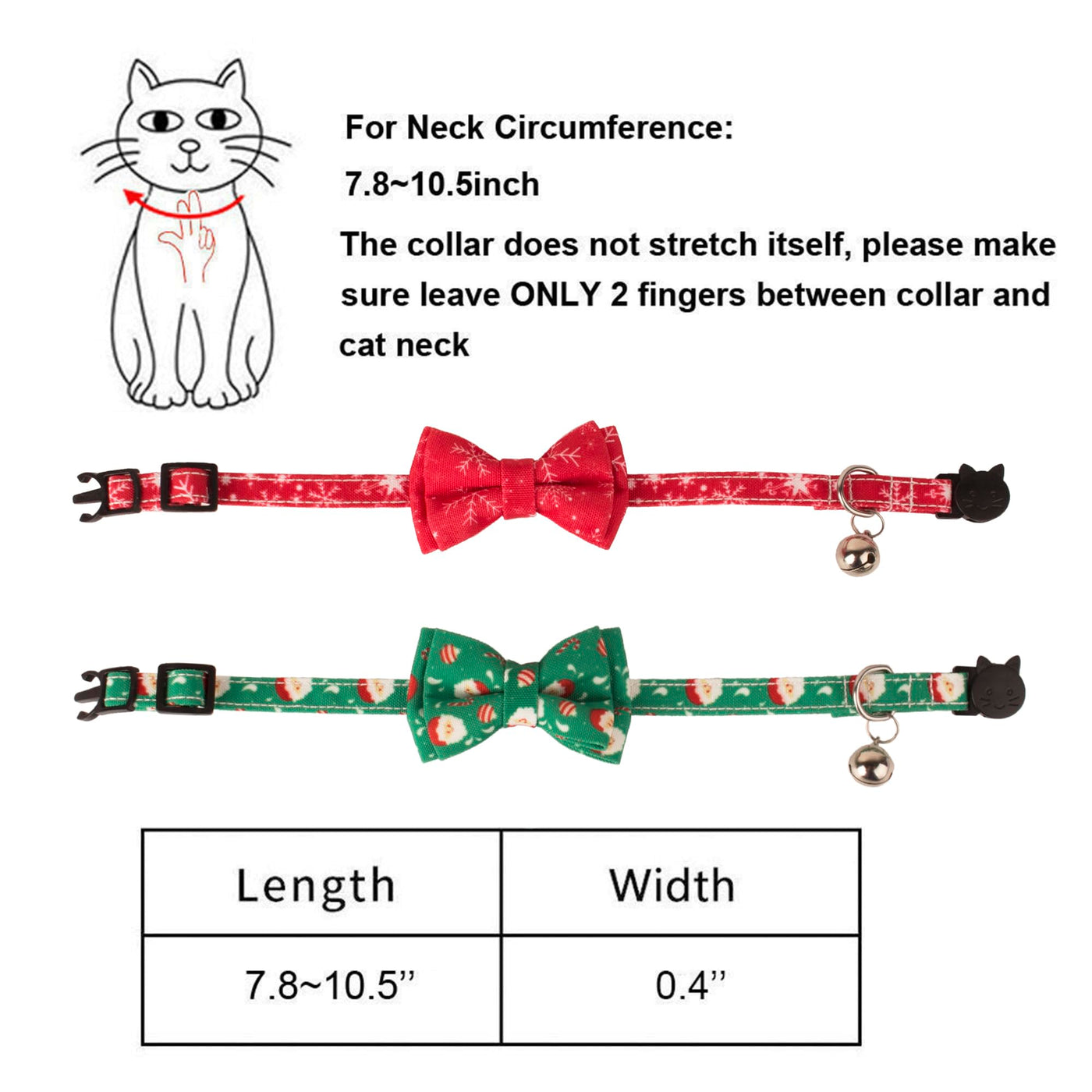 Adoggygo 2 Pack Christmas Cat Collars Breakaway With Bell And Bowtie, Not Only Cute And Fashion, But Also Provide Your Cat With Safety. Size: 7.8''=Neck=10.5''; 0.4'' In Width Main Color: Green, Red Material: Durable Polyester Fabric Style: Santa Claus Snowflake Pattern Target Audience: Cats Features: 1. Christmas Design Designed With Cute Santa Claus Snowflake Pattern. Cute Cat Collars Make Your Cat Lovely On Christmas Party 2. Breakaway The Safe Buckle Which Releases Quick When Pressure Is Applied. It Provides More Safety For Your Cat. On The Other Hand, It Is Convenient For You To Open It To Put On And Off. 3. Removable Bowtie With 2 Elastic Bands Attached Collar. You Can Adjust The Position Of The Bowtie To Show It On The Front Of Your Cat'S Neck. 4. Safety Bell Collar Has A Safety Bell To Warn Birds And Small Animals That The Cat Is Coming. On The Other Hand, You Will Never Lost Your Kitty. The Bell Can Be Taken Off Or Replaced. Package Include: 1* Green Christmas Cat Collar 1* Red Xmas Kitten Collar Notice: Due To Manual Measurement, There Are 0.2'' - 0.5'' Error. Pleasure Measure Carefully Before Ordering.