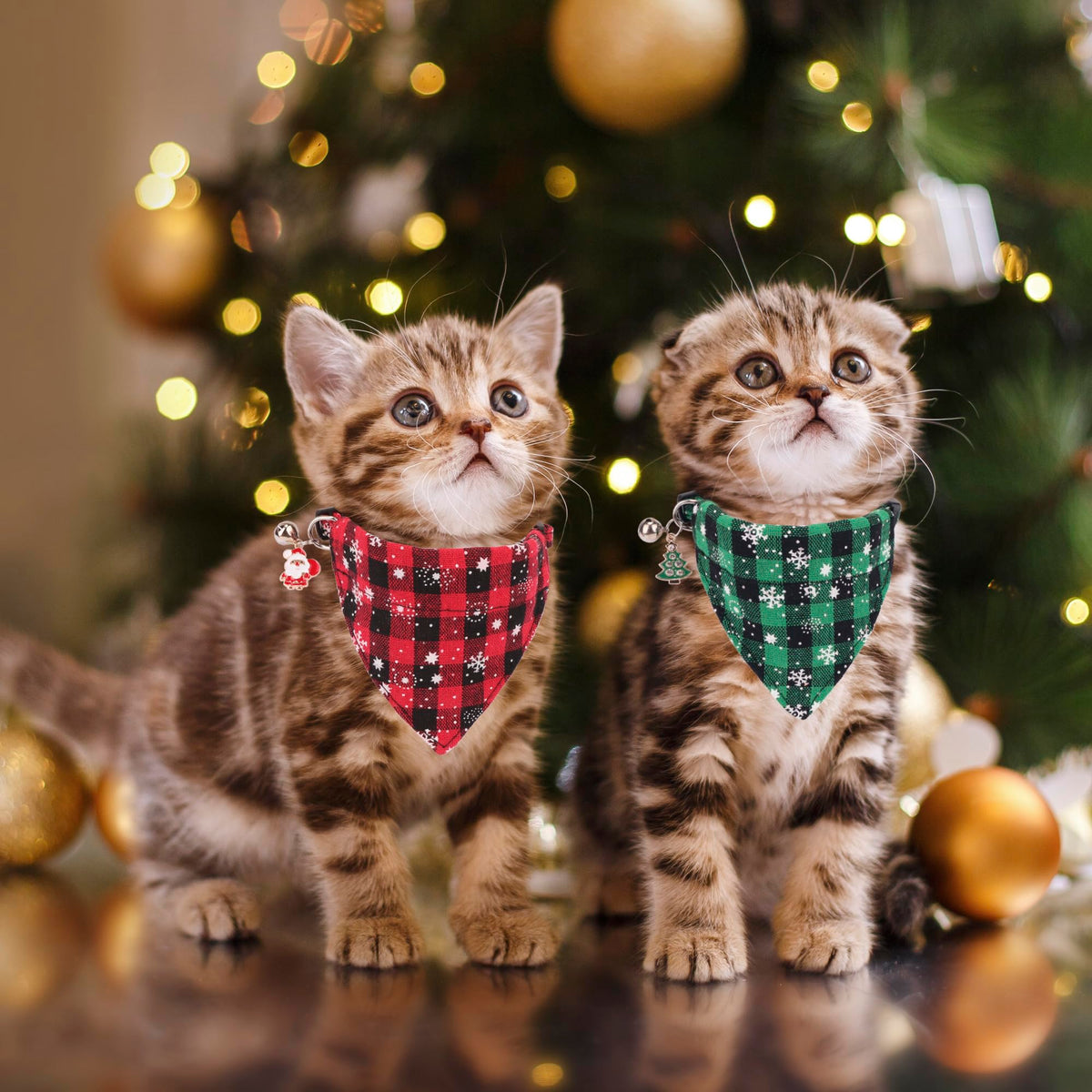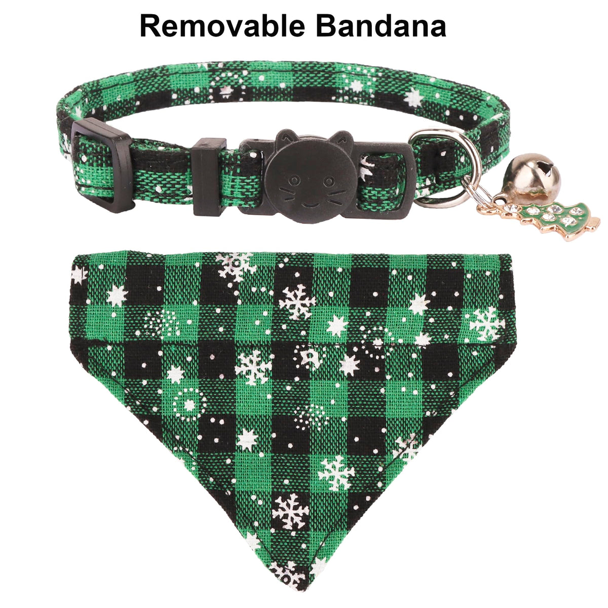 ADOGGYGO 2 pack Christmas cat collars breakaway with bell and bandana, not only cute and fashion, but also provide your cat with safety. Features: 1. Cat Christmas Collar Designed with red green plaid with snowflake pattern. Cute cat collars make your cat lovely on Christmas party. 2. Breakaway cat collars The safe buckle which releases quick when pressure is applied. It provides more safety for your cat. On the other hand, it is convenient for you to open it to put on and off. 3. Removable Bandana The pattern is more clear on the bandana than bowtie.The bandana is removable, you can adjust the position of the scarf to show it on the front or back of your cat's neck. 4. Cat collars with Bell Collar has a safety bell to warn birds and small animals that the cat is coming. On the other hand, you will never lost your kitten. The bell can be taken off or replaced. Specification: Size: 7.5'≤neck≤10.5'; 0.4' in width Main Color: red, green Material: soft and durable cotton fabric Style: Snowflake & Plaid Target Audience: cats Package Include: 1* red plaid christmas cat collar 1* green plaid christmas kitten collar Notice: Due to manual measurement, there are 0.2' - 0.5' error. Pleasure measure carefully before ordering.