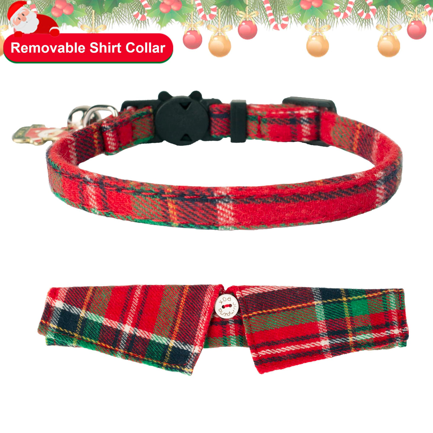 Adoggygo 2 Pack Christmas Cat Collars Breakaway With Bow Tie And Bell, Not Only Make Your Cat Lovely On Christmas Day, But Also Provide Your Cat With Safety. Features: New Style Cat Formal Shirt Collar Stylish Red Green Plaid Pattern Breakaway Cat Christmas Collars Cute Santa And Xmas Tree Charms Removable Shirt Collar, Bell And Charms Specification: Size: 7.5''=Neck=10.5''; 0.4'' In Width Material: Soft And Durable Cotton Fabric Target Audience: Cats, Kittens Package Include: 1* Red Plaid Christmas Cat Collar, 1* Green Plaid Cat Chritsmas Collar