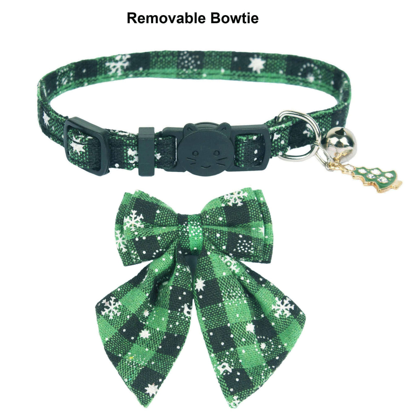 Features: Classic Plaid Design with Snowflake Pattern New Style Big Bow Design Cat Christmas Collar Breakaway Collar with Quick Release Buckle Cat Collar with Removable Bow Kitten Collar with melodious sound bell