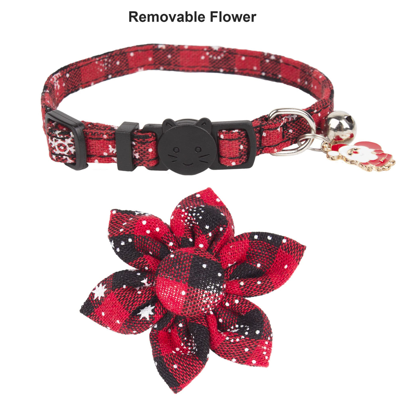Features: Plaid with Snowflake Pattern Cat Collar and Cute Plaid Flower Breakaway Cat Christmas Collars Cat Collar with Removable Floral Cats Collar with melodious sound bell