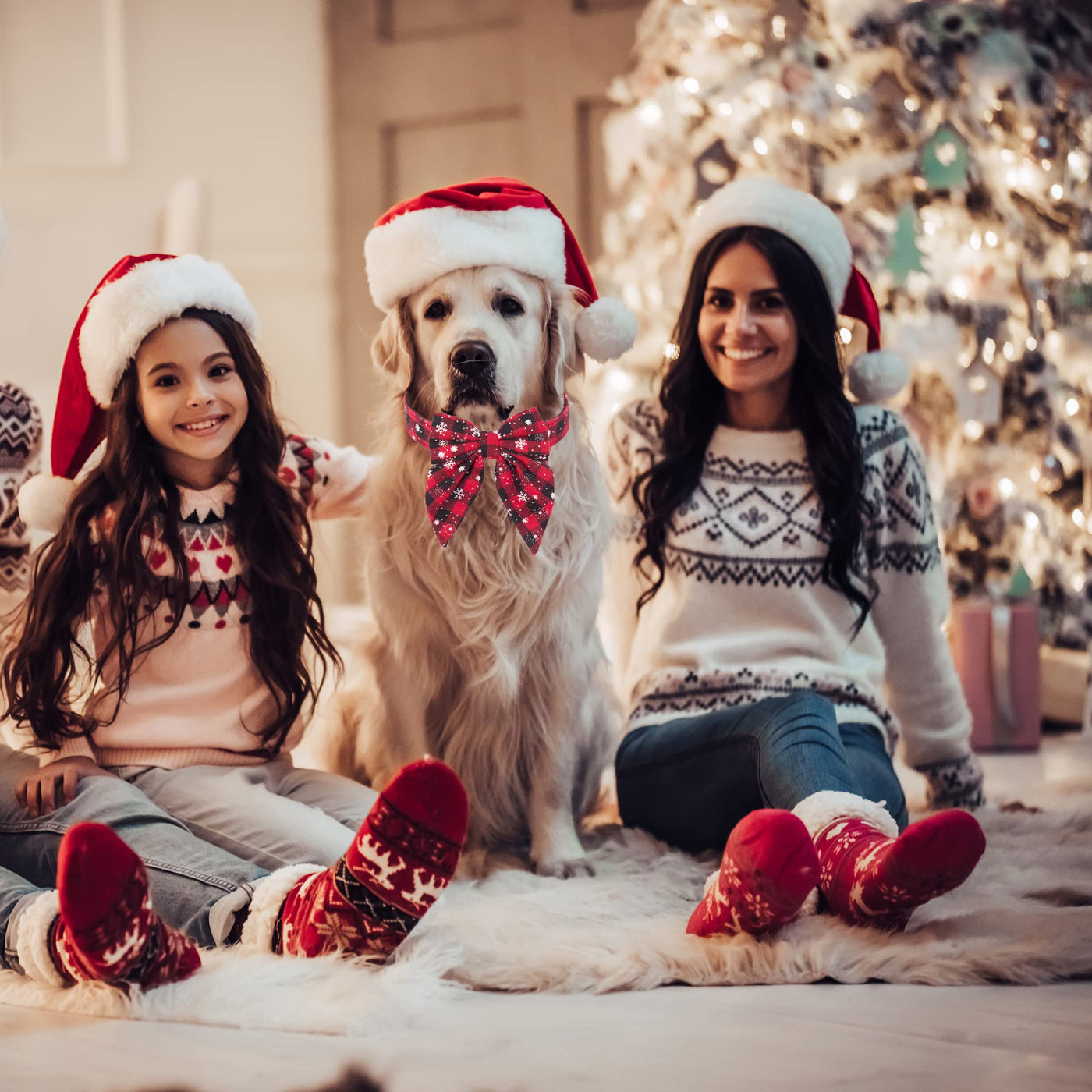 ADOGGYGO Christmas Dog Collar with Bow Tie, Best christmas new year Gift for Your Dogs Pets