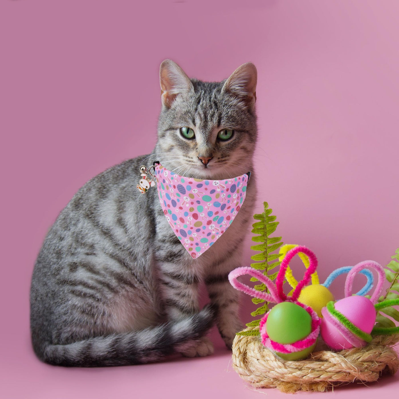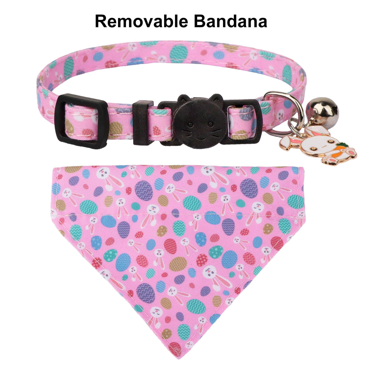 Adoggygo Easter Cat Collars Breakaway With Removable Bandana, Adjustable Pink Bunny Easter Bandana Collar For Cats Kittens