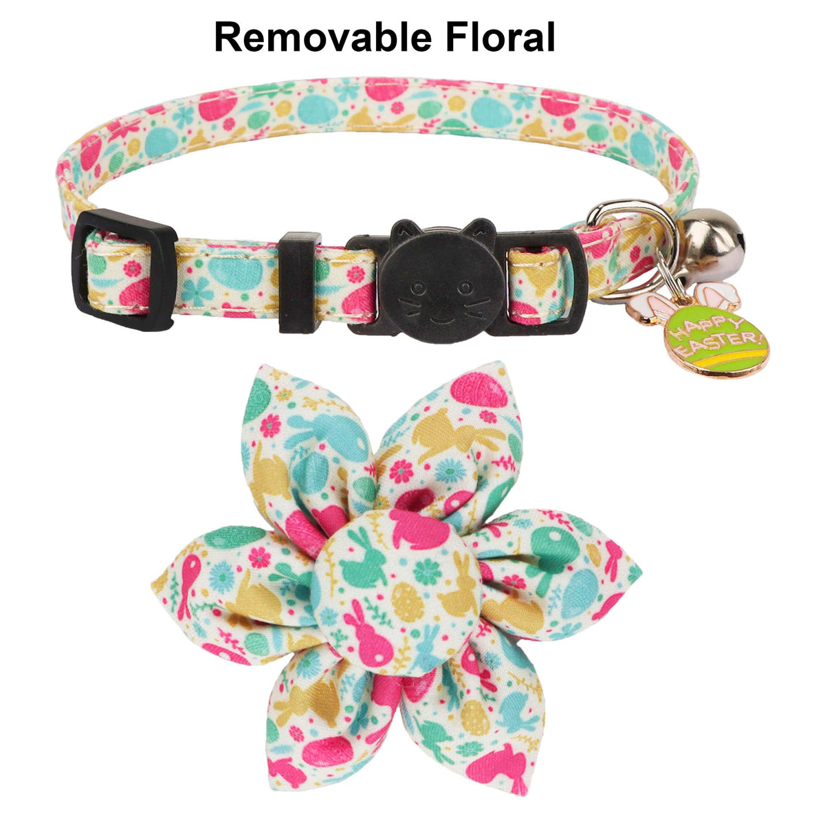 Adoggygo Easter Cat Collars With Removable Flower Bell, Adjustable Rabbit Easter Eggs Pattern Cat Floral Collars For Cats Kitten
