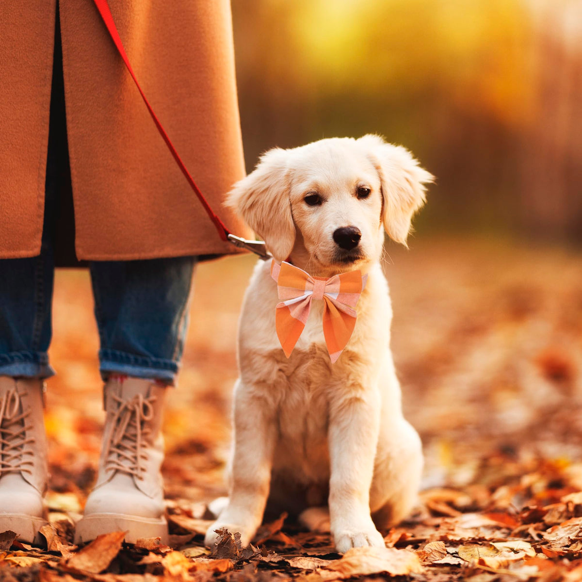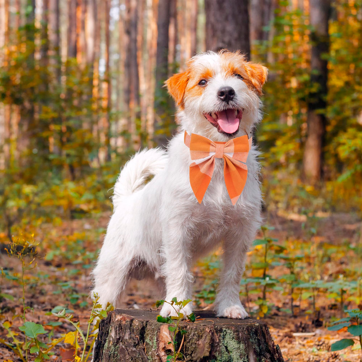 Adoggygo Fall Dog Collar With Bow, Halloween Thanksgiving Dog Bowtie Collar, Adjustable Orange Dog Fall Collars For Small Medium Large Dogs Pets (Small, Fall)