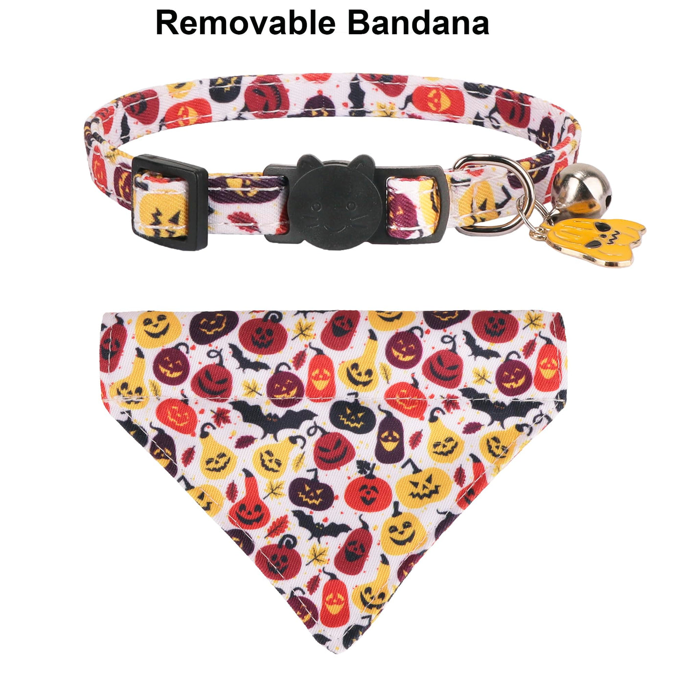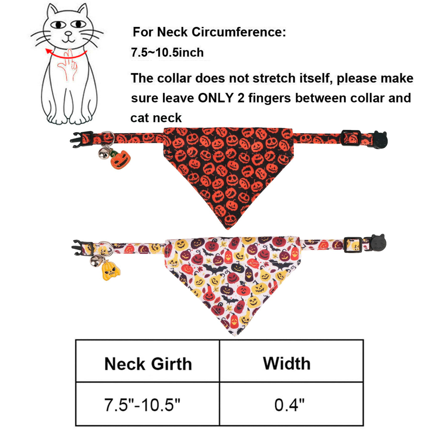 Adoggygo Halloween Cat Bandana Collars Are A Fun And Stylish Accessory For Pets During Halloween Holiday, Make Your Pet Look More Attractive And Eye-Catching On Halloween, Fall Season, Photo Shoots, Parties, Or Even Just For Daily Use.Features:Black And White Color, Halloween-Themed Pumpkin Patternbreakaway Cat Collar With Removable Bandana, Bell And Charmsize: 7.5''=Neck=10.5''; 0.4'' In Widthmaterial: Durable Polyester Fabrictarget Audience: Cats, Kittenspackage: 1* Black Pumpkin Halloween Cat Collar With Bandana, 1* White Color Cat Halloween Collar, Full Of Halloween Atmospherelet Your Furry Friend Join In The Coming Holidays With Adoggygo Cat Collars And Bandanas! Dress Up Now!