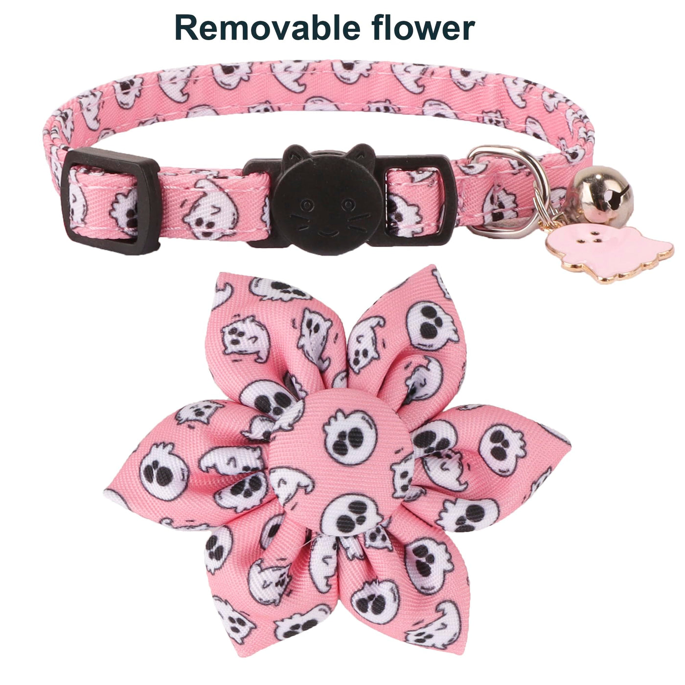 Adoggygo Halloween Cat Collars Are A Fun And Stylish Accessory For Pets During Halloween Holiday, Make Your Pet Look More Attractive And Eye-Catching On Halloween, Fall Season, Photo Shoots, Parties, Or Even Just For Daily Use.Features:Pink And White Color, Halloween-Themed Pumpkin, Ghost And Skull Patternbreakaway Cat Collar With Removable Floral, Bell And Charmsize: 7.5''=Neck=10.5''; 0.4'' In Widthmaterial: Durable Polyester Fabrictarget Audience: Cats, Kittenspackage: 1* Pink Ghost Halloween Cat Collar With Floral, 1* Pumpkin Pattern Cat Halloween Collar, Full Of Halloween Atmospherelet Your Furry Friend Join In The Coming Holidays With Adoggygo Cat Collars And Bandanas! Dress Up Now!
