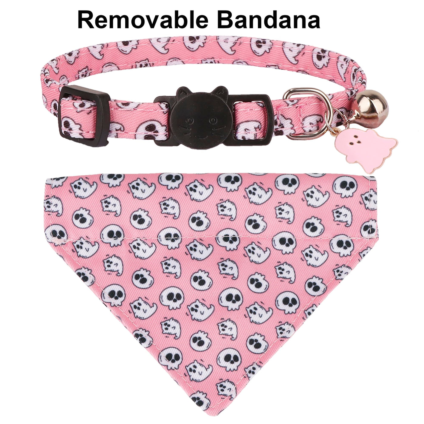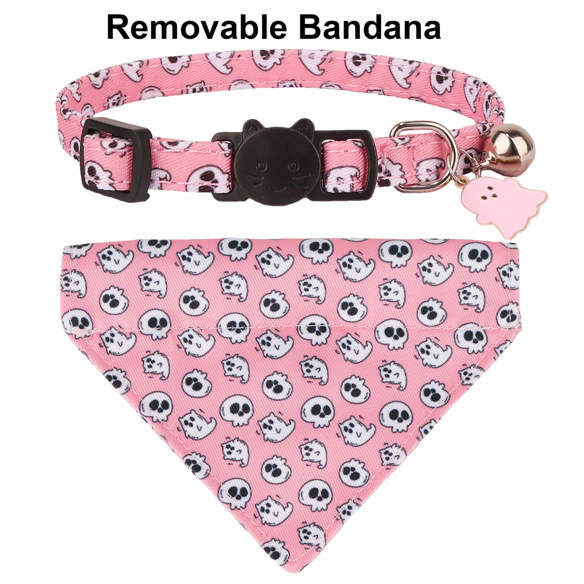 Adoggygo Halloween Cat Collars Are A Fun And Stylish Accessory For Pets During Halloween Holiday, Make Your Pet Look More Attractive And Eye-Catching On Halloween, Fall Season, Photo Shoots, Parties, Or Even Just For Daily Use.Features:Pink Color, Specially Designed For Female Catshalloween-Themed Ghost And Skull Patternbreakaway Cat Collar With Removable Bowtie, Bandana, Bell And Charmsize: 7.5''=Neck=10.5''; 0.4'' In Widthmaterial: Durable Polyester Fabrictarget Audience: Cats, Kittenspackage: 1* Pink Halloween Cat Bowtie Collar, 1* Halloween Pink Cat Bandana Collar, Full Of Halloween Atmospherelet Your Furry Friend Join In The Coming Holidays With Adoggygo Cat Collars And Bandanas! Dress Up Now!