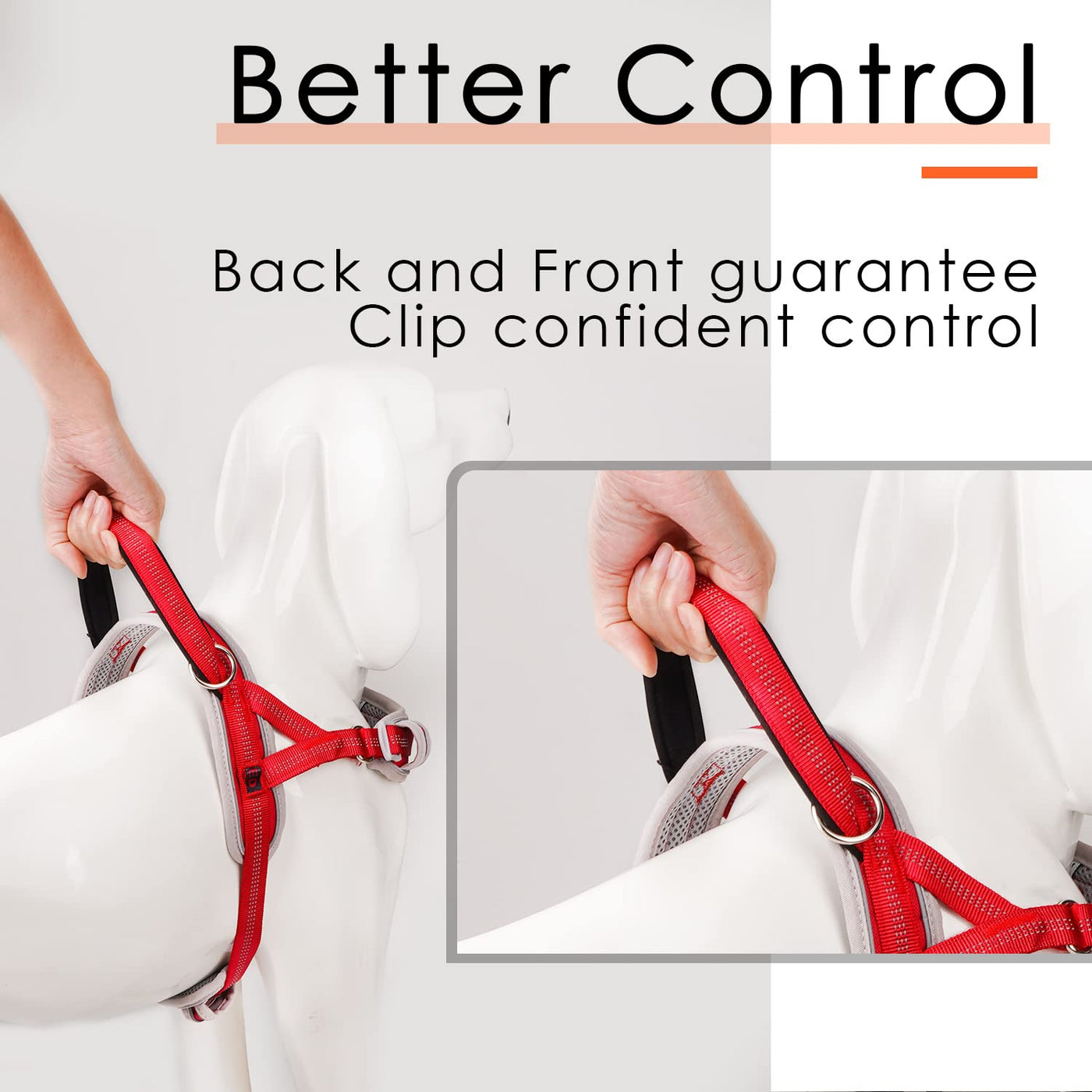 No-pull and No-choke: Our upgraded dog harness no pull widened the area of the harness at the neck for the dog. The unique design can effectively protect the dog's neck from strangulation when leading the dog to run.