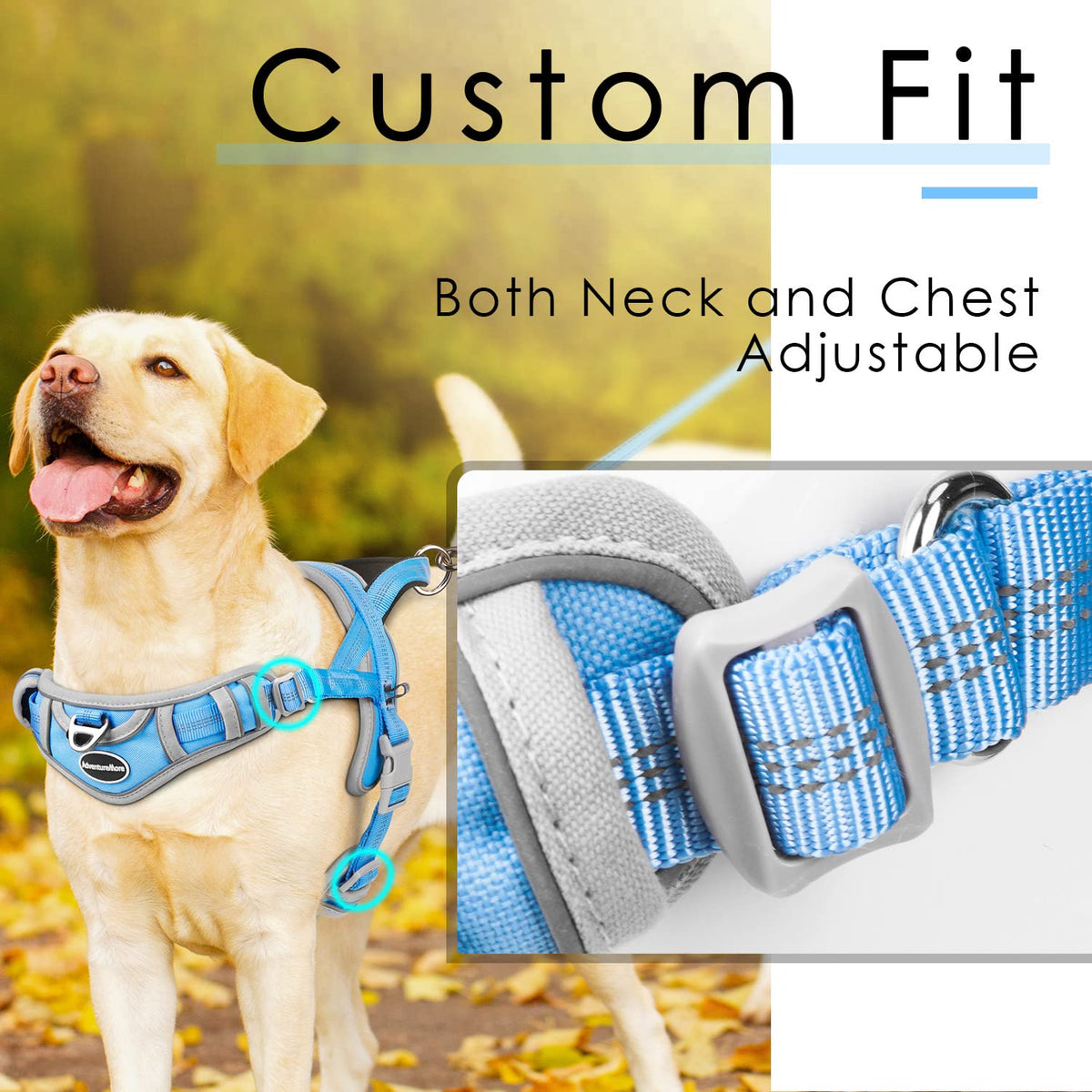 Adventuremore Dog Harness For Medium Dogs No Pull, Sport Dog Halter Harness Adjustable Reflective Dog Vest Escape Proof Dog Harness With Easy Control Front Clip Handle For Training Walking M Blue