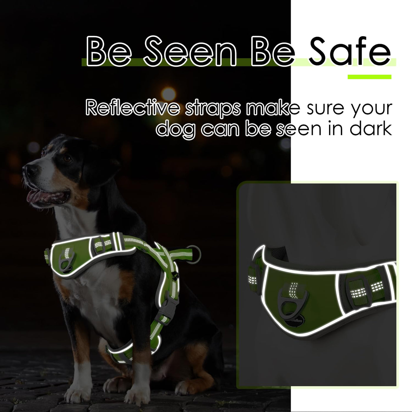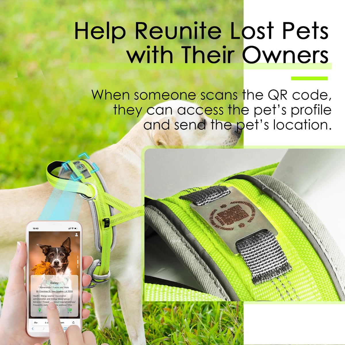 Adventuremore Dog Harness Medium Sized Dog No Pull With Qr Code Dog Tag, Dog Halter Harness Adjustable Reflective Dog Vest Escape Proof Dog Harness With Easy Control Front Clip Handle For Training Walking M Green