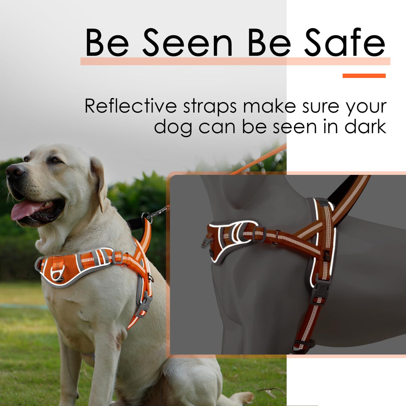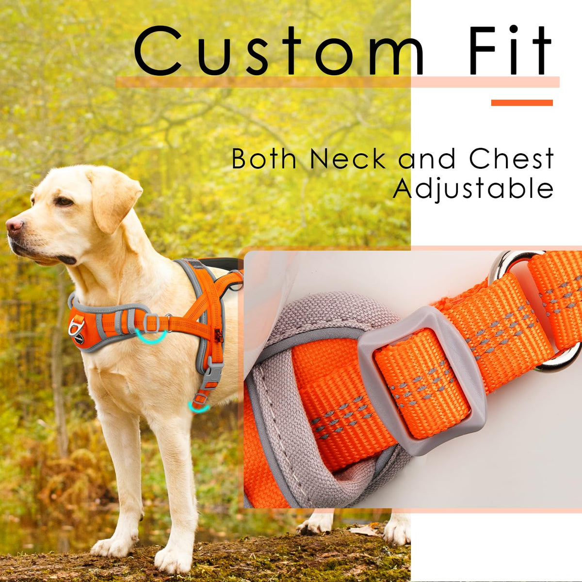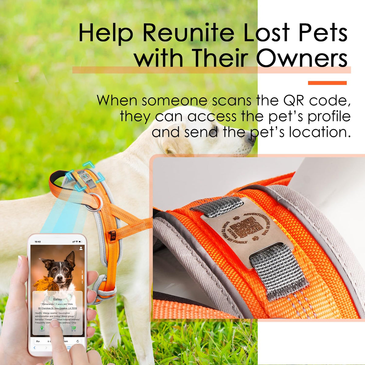 Adventuremore Dog Harness Medium Sized Dog No Pull With Qr Code Dog Tag, Dog Halter Harness Adjustable Reflective Dog Vest Escape Proof Dog Harness With Easy Control Front Clip Handle For Training Walking M Orange