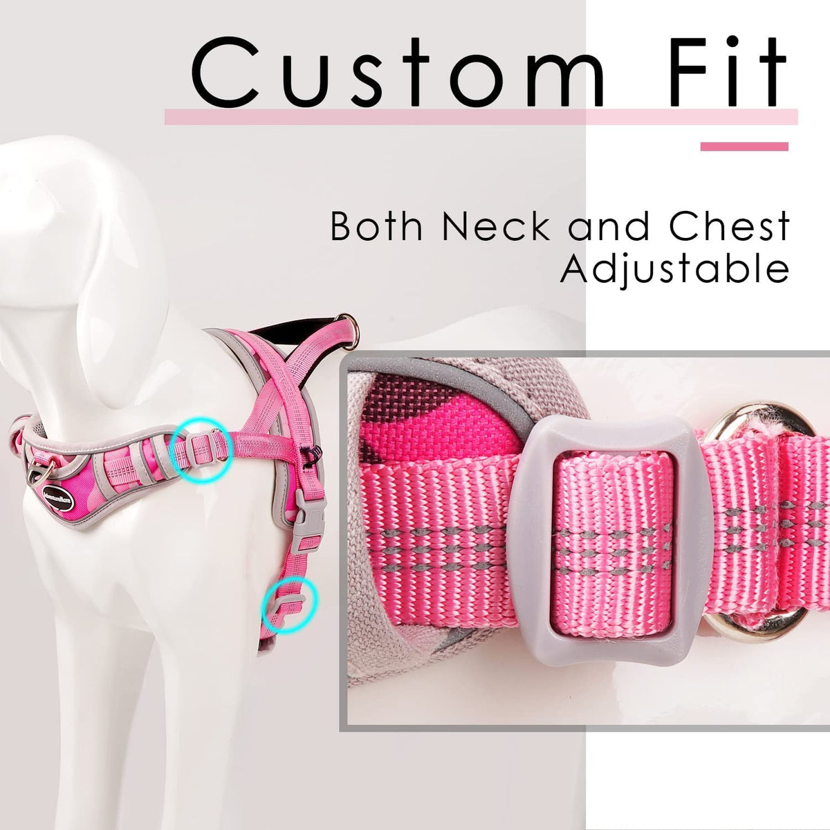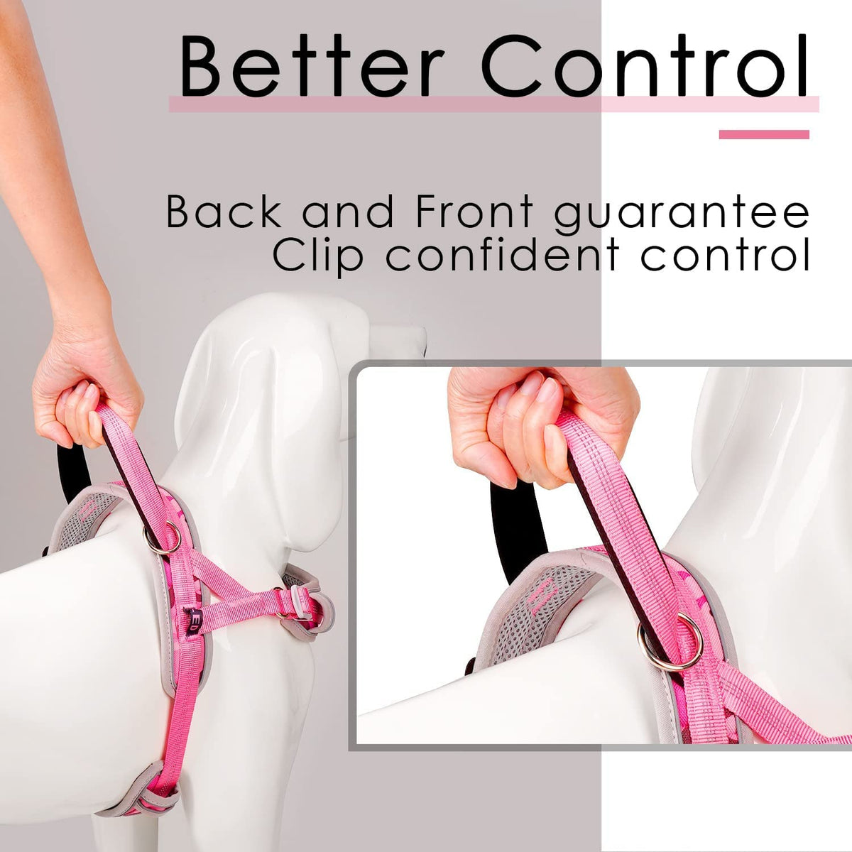 Adventuremore No Pull Dog Harness For Large Dogs, Adjustable Dog Halter Harness Reflective Dog Vest Escape Proof Dog Harness With Easy Control Front Clip Handle For Training Walking (Pink, M)