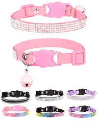 Aecllcea Cat Collars For Girl Cats With Rhinestone Soft Velvet,Breakaway Cat Collars With Bell,Adjustable Safe Kitten Collar (Pi