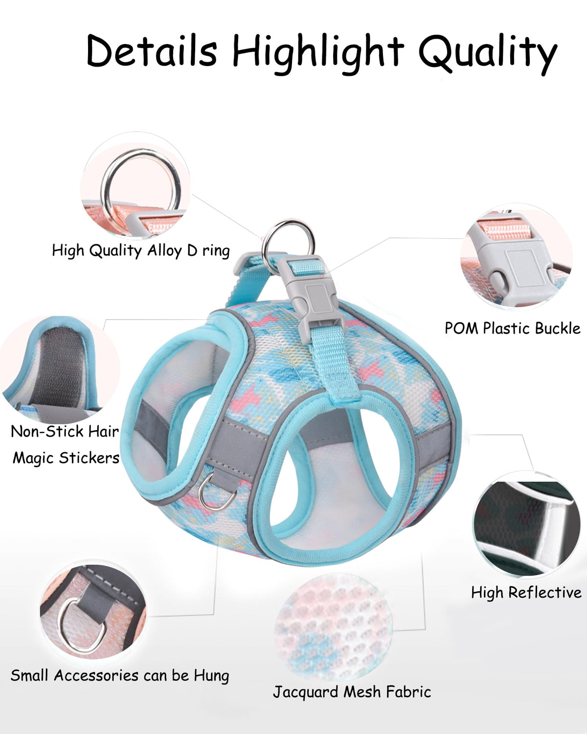 Aecllcea Dog Harness And Leash Set For Small Medium Dogs, No Pull, Step-In, Cat Harness (Blue, Xs)
