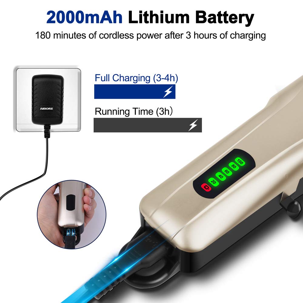 6.Built-in 2000mAh Li-ion Batttery: Since this dog grooming kit is cordless, you have more freedom to use it and not worry about it getting snagged. It comes with a rechargeable battery, giving you 180 minutes of operational power with 3-4 hours charging time. Power cord is also available.