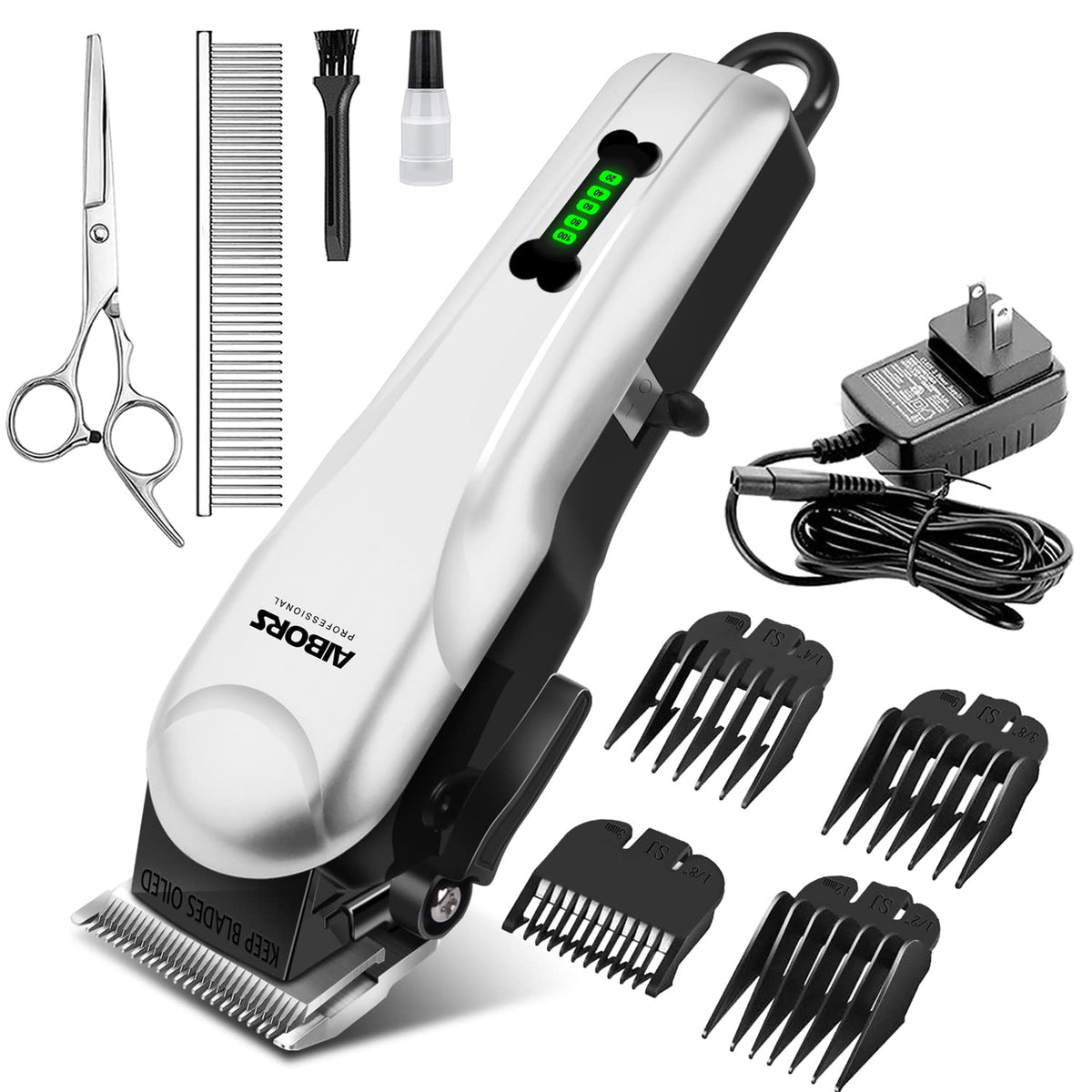 Aibors Dog Clippers For Grooming Low Noise Rechargeable Cordless Pet Hair Grooming Clippers, Professional Heavy Duty Dog Grooming Kit Dog Trimmer Shaver For Dogs Cats Pets (Silver)