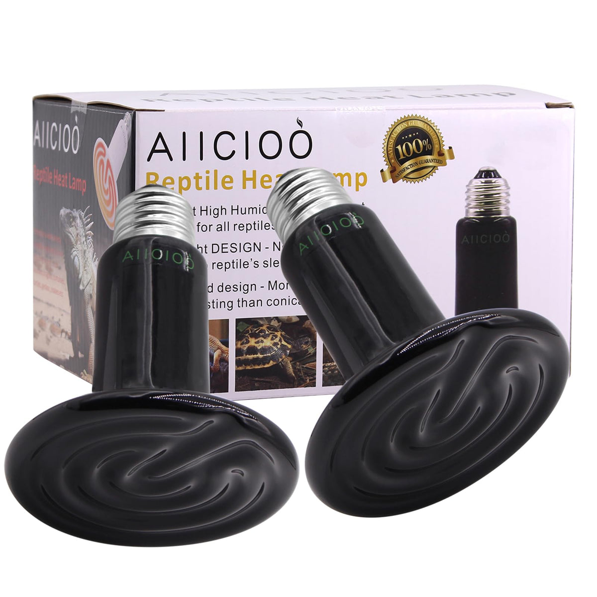 Aiicioo 150W Black Ceramic Heat Emitter 2Pack No Light Heat Bulb For Reptile Emitting Heat Lamp Bulb For Bearded Dragon Lizard T