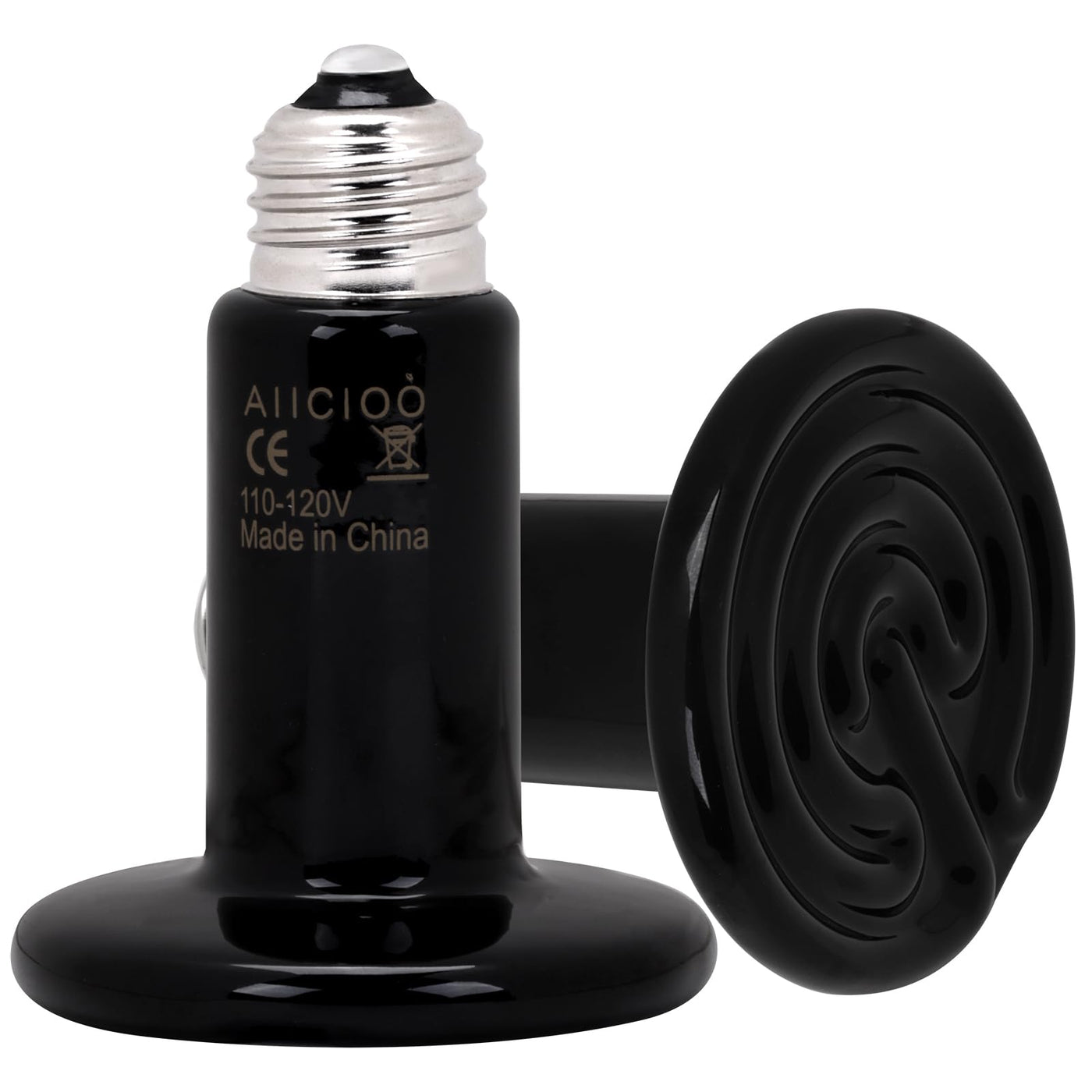 Aiicioo 50W Black Ceramic Heat Emitter 2Pack No Light Heat Bulb For Reptile Emitting Heat Lamp Bulb For Bearded Dragon Lizard To