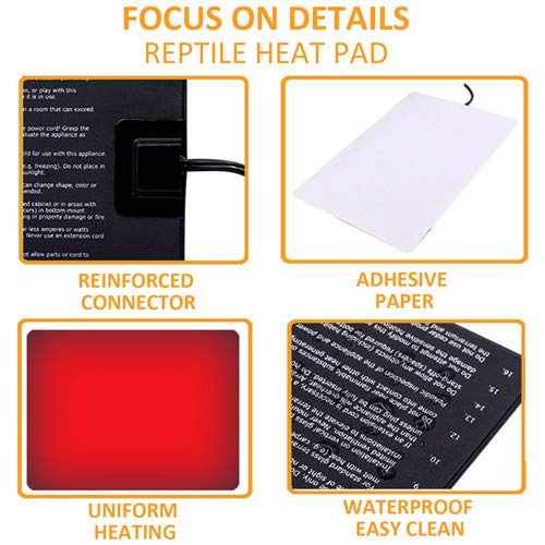 Aiicioo Under Tank Heater are an ideal 24-hour primary or secondary heat source for tropical or temperate reptilian species. It contains a high level nichrome heating wire and great PVC material to insulation which can provide gently and durable warmth for reptiles and amphibians. Reptile heating pad permanently adhere to your terrarium or incubator, forming a solid bond for optimum heat transfer. Reptile heating pad can be placed underneath the tank or on the side of the tank depending on your set up. The Reptile heating pad should be placed on the outside of the tank only. If you choose to place the heater on the underside of the tank, be sure to elevate the tank slightly using the included 'bump-on feet' or another method to prevent heat encapsulation. Please be sure to read the instructions carefully.