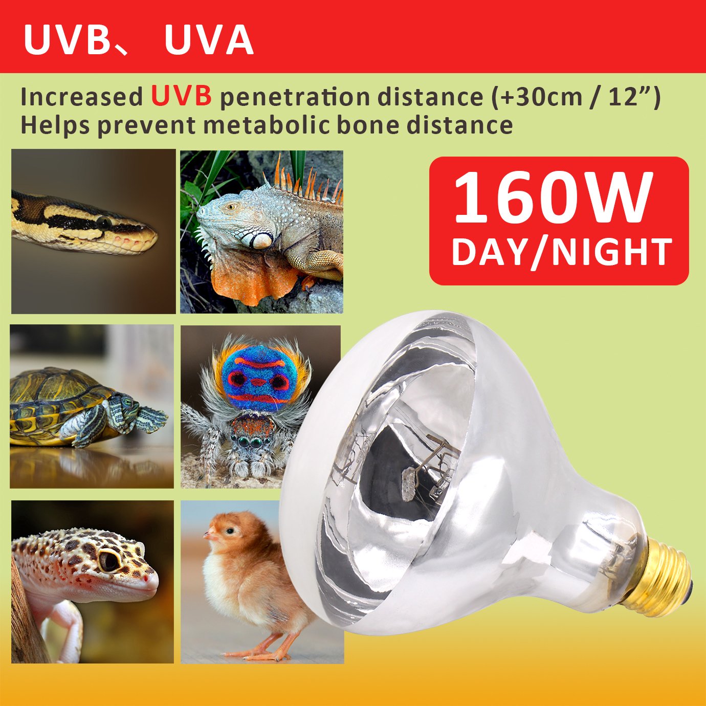 Aiicioo Uvb Reptile Light 160W - Uvb Light Bulb For Reptile Mercucry Vapor Bulb Heat Basking Lamp Bulb Full Spectrum Uva Uvb All