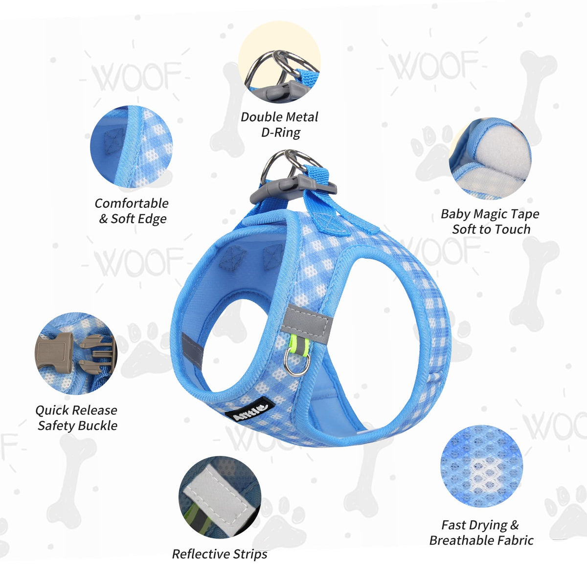 Aiitle No-Pull Pet Harness With A Leash, Plaid Comfort Padded Vest, Step In Dog Harness, Reflective Bands, Soft Breathable Pet S