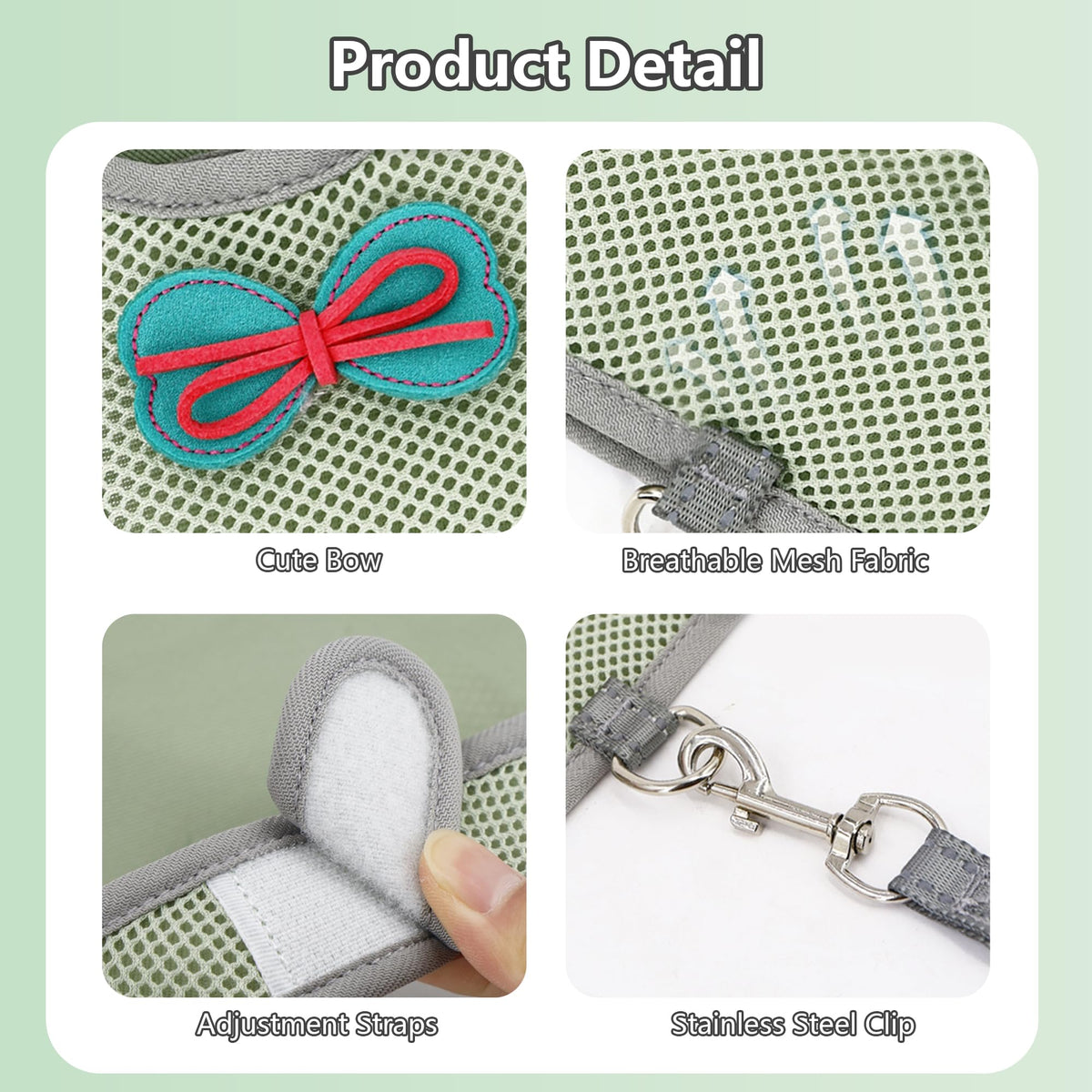 Aiitle Rabbit Harness And Leash Set Is Made Of Soft And Breathable Mesh Fabric, Rabbits Become Stylish When Wearing, The Color Is Eye-Catching And Easy To Find, The Fabric Is Easy To Wash And Dries Quickly, Suitable For All Kinds Of Small Pets Outdoor Walking Training Use. Features: Our Rabbit Harness Is Mainly Crafted With A Mesh Material With Padding, Which Can Make Your Pets Comfortable, And The Mesh Material Is Breathable And Soft To Wear. The Bunny Leash And Harness Set Is Nice And Practical, Which Can Be Chosen As Gifts For Mother, Father, Partners, Or Other Pet Owners, Allowing Them Can Walk With Their Pets Safely. Our Rabbit Harness And Leash Is Light And Portable To Conveniently Support Adventures Outdoors. The Rabbit Vest Harness Comes In Different Sizes Suitable For Small Animals Like Rabbits, Cats, Guinea Pigs, Chinchillas, Hamsters, Ferrets, Gerbils, Mice, Etc. Specifications: -Material: Metal/Polyester -Color: Pink/Beige/Olive Green Size Chart: - S Size: 7.1''-8.7'' Chest Girth, 6.3''-7.9'' Neck Girth - M Size: 8.7''-11'' Chest Girth, 7.9''-8.7'' Neck Girth - L Size: 11''-13.4'' Chest Girth, 8.7''-10.3'' Neck Girth Package Includes: -1 X Rabbit Harness -1 X Leash Notes: Manual Measurement, Please Allow Slight Errors On Size. The Color May Exist A Slight Difference Due To Different Screen Displays. Small Items Are Included, Please Keep Them Away From Pets In Case Of Choking Risk. Before Purchase, Confirm Whether The Product Size Is Suitable For Your Pet, And Observe The Pet'S Reaction When Using. Please Remove The Product In Time If There Is Any Discomfort.